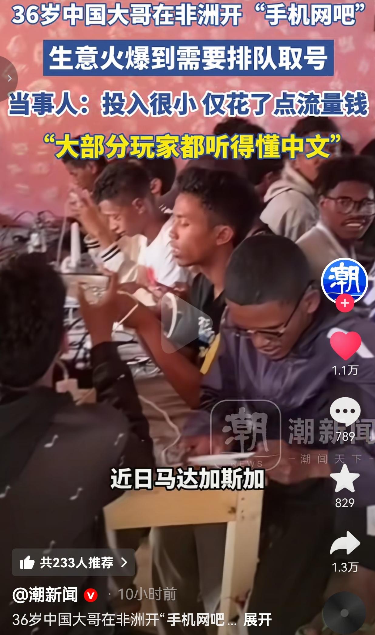 疯了!36岁中国大哥在非洲开“手机网吧”,黑人小哥楼道排队取号,连中文都听会了! 谁能想到,在非洲马达加斯加,一个中国大哥靠“卖流量”赚疯了! 36岁的“包包哥”,揣着几千块钱,在非洲租了个小破屋,自己钉了几张木桌子,拉了根太阳能电线,就开起了全非洲最野的“手机网吧”。 没有电脑,没有装修,甚至连正经电都没有——全靠太阳能板发电,他只负责提供高速流量和坐的地方。 玩家要么自带手机,要么租他手里的旧设备,按小时付钱。最火的时候,十来个人挤着看一台手机,就这么个简陋到离谱的摊子,现在火到要像银行一样排队取号,黑人小哥在楼道里排成长龙,晚来的直接被大哥挥手劝退:“后面别排了,今天满了!” 更离谱的是,这帮非洲年轻人天天泡在这儿玩国产手游,现在大部分都听得懂中文,喊“上号”“推塔”比本地人还溜。 大哥说:“投入小到离谱,就花了点流量钱,桌椅板凳自己钉,电是太阳能的,现在每天人满为患,赚得比在国内打工强十倍!” 网友看到后评论说:“这才是降维打击!非洲缺电缺网,人家直接卖“上网权”,比开工厂还暴利!” 也有的网友说:“笑不活了,非洲小哥为了玩手游学中文,这波文化输出赢麻了!” 还有的网友说:“我们这儿真的缺网!大哥什么时候来我们城市开分店?我第一个去捧场!” 也有的网友说:“酸了!同样是36岁,人家在非洲当老板,我在国内996还被优化…” 很多人总说“没本钱、没资源、没机会”,可这位大哥在非洲,用最原始的条件,抓住了最刚需的痛点——非洲年轻人想上网、想玩游戏,但没网、没电、没设备。 他没搞花里胡哨的模式,就盯着“给手机供网”这一件事,把成本压到最低,把需求做到极致,哪怕最火的时候十来个人挤着看一台手机,也没人抱怨,只盼着能早点轮到自己。 更戳人的是,他没把自己当“外来老板”,而是和这帮非洲小哥打成一片。 看着他们蹲在木桌上盯着屏幕傻笑,在楼道里踮脚等号,你会发现:快乐和欲望从来不分国界,中国的手游、中国的流量,就这样悄悄扎进了非洲的泥土里。 有人说这是“赚穷人的钱”,我倒觉得这是最温柔的商业——他没割韭菜,没搞套路,只是用自己的双手,给一群渴望连接世界的年轻人,打开了一扇小小的窗。 这哪里是开网吧?这是在贫瘠的土地上,种出了一片数字的绿洲。 真正的机会,从来不在高楼里,而在别人看不见的泥土里;真正的强者,从来不是等风来,而是在荒漠里自己造雨! 对此,你怎么看?