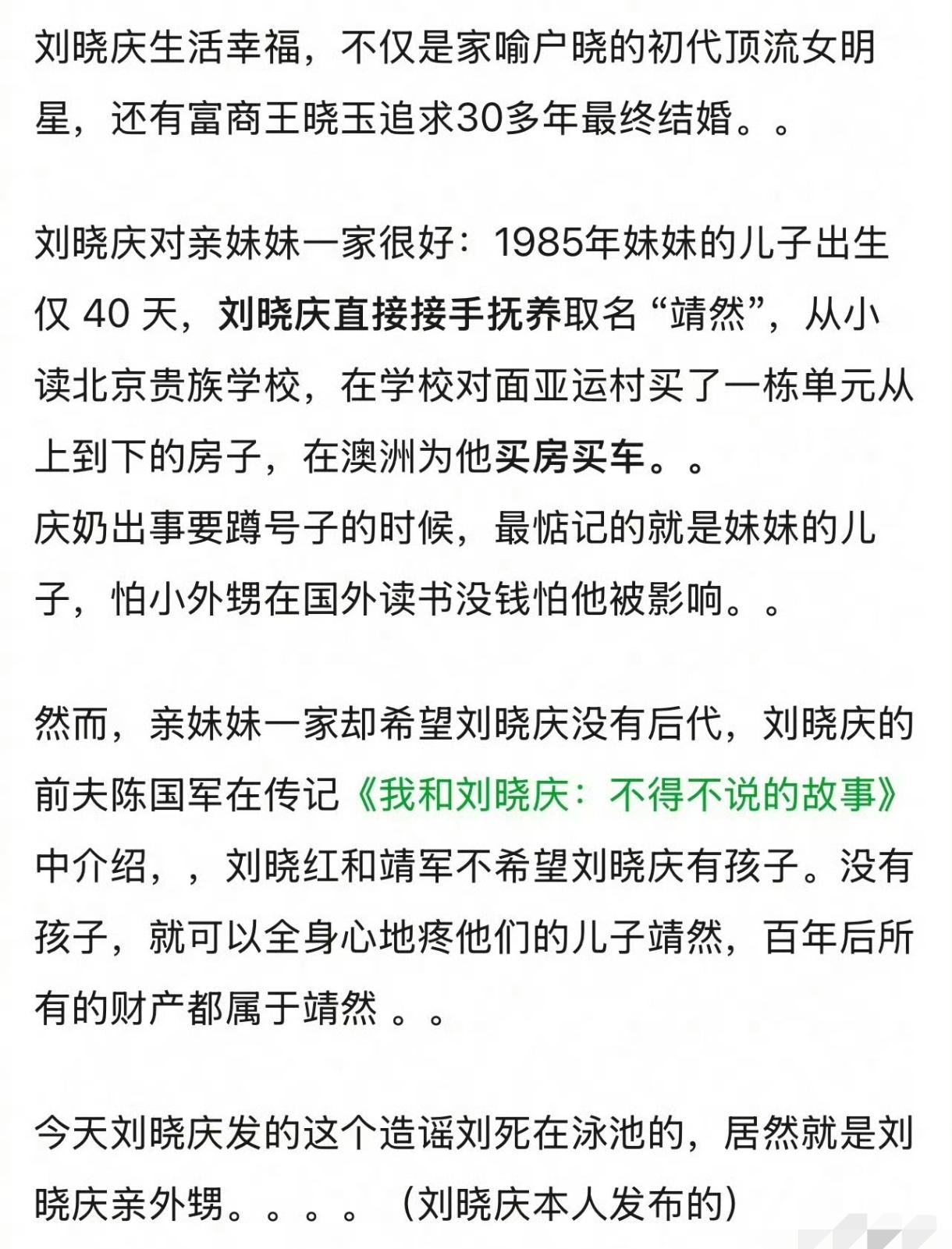 刘晓庆妹妹的儿子刚出生40天。就被刘晓庆接手抚养。把他当亲儿子,让他上贵族学校,