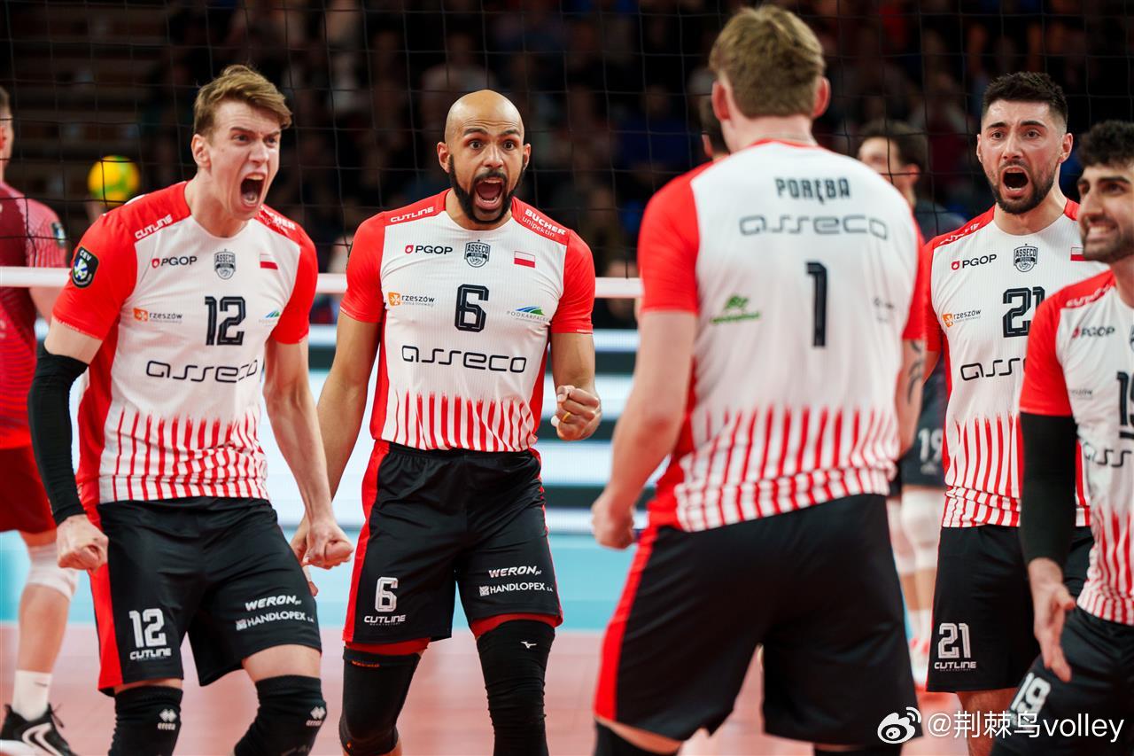 【男排欧冠】¼决赛首回合,波兰热舒夫主场0-3(21-25 23-25 20-25)不敌安卡拉农行,克莱维诺荣膺单场最佳。扣球36-41,拦网10-7,发球2-2,失误25-16。