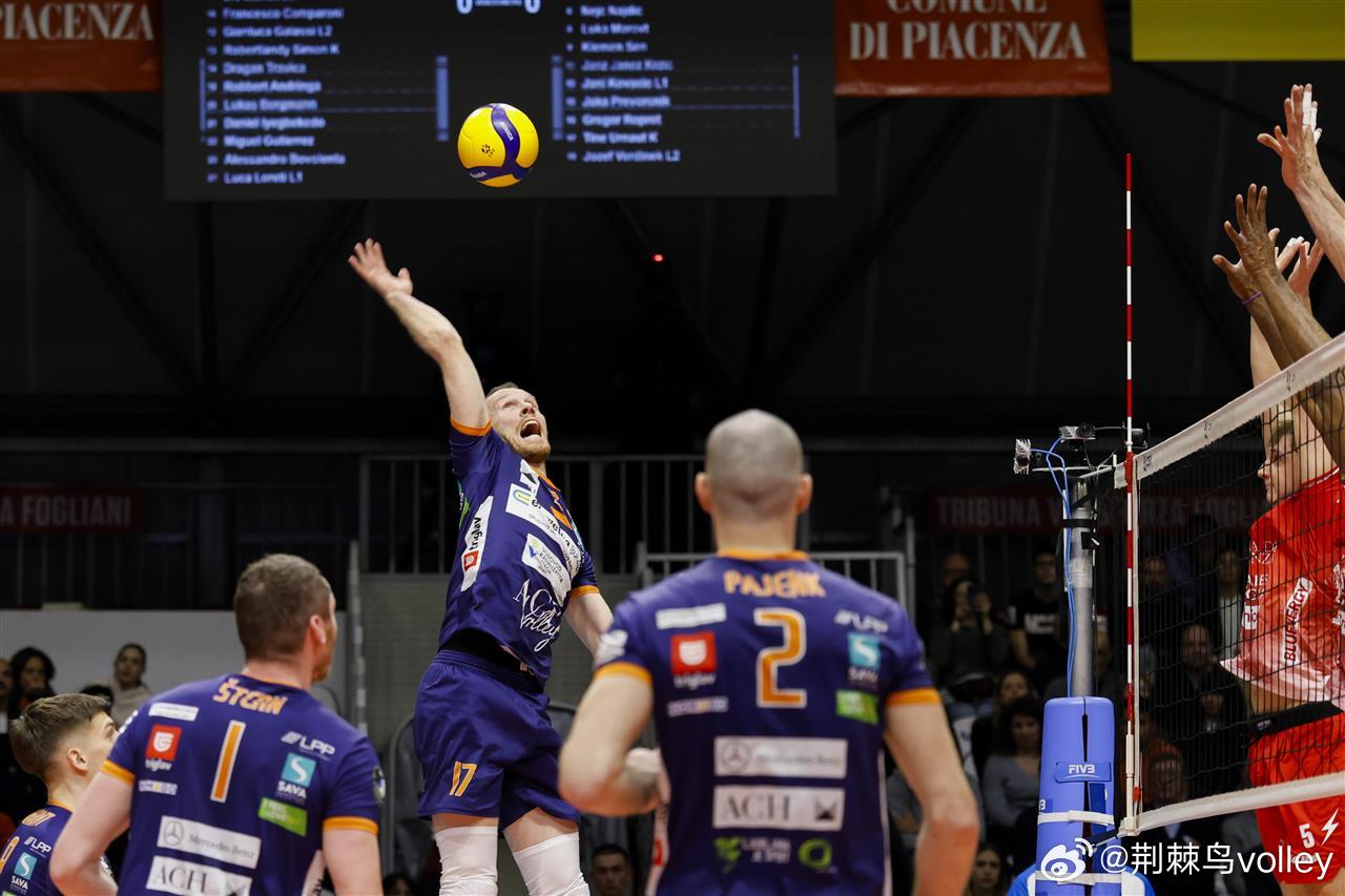 【男排欧联杯】半决赛首回合,意大利皮亚琴察主场3-2(30-28 25-20 27-29 20-25 15-4)险胜斯洛文尼亚卢布尔雅那占得先机。另外一场半决赛德国吕纳堡3-1客场击败比利时马塞克。