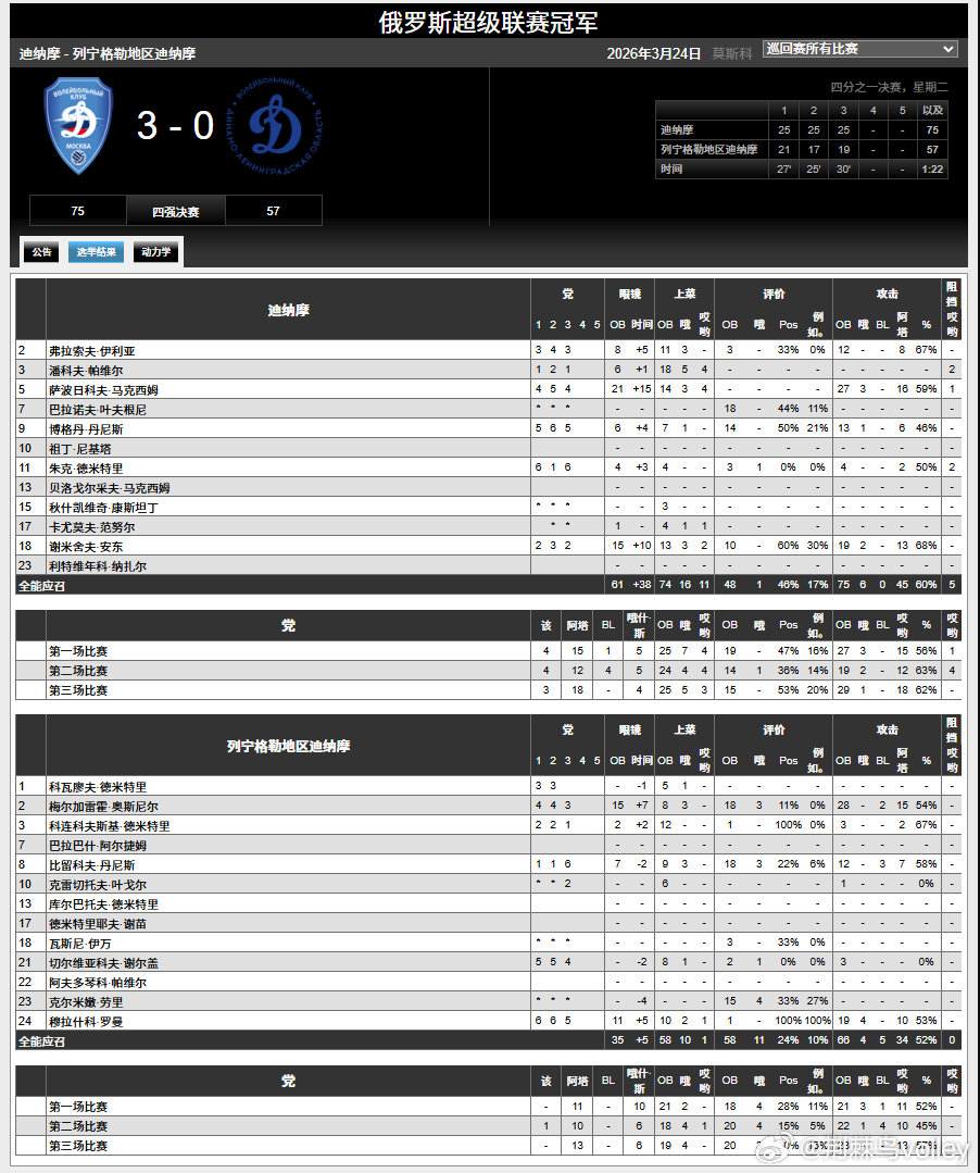 火车头3-1狮子头莫斯科迪纳摩3-0列宁格勒迪纳摩 圣彼得堡3-0叶尼塞 喀山泽尼特3-0新库伊比舍夫斯克 (具体技术统计见附图)