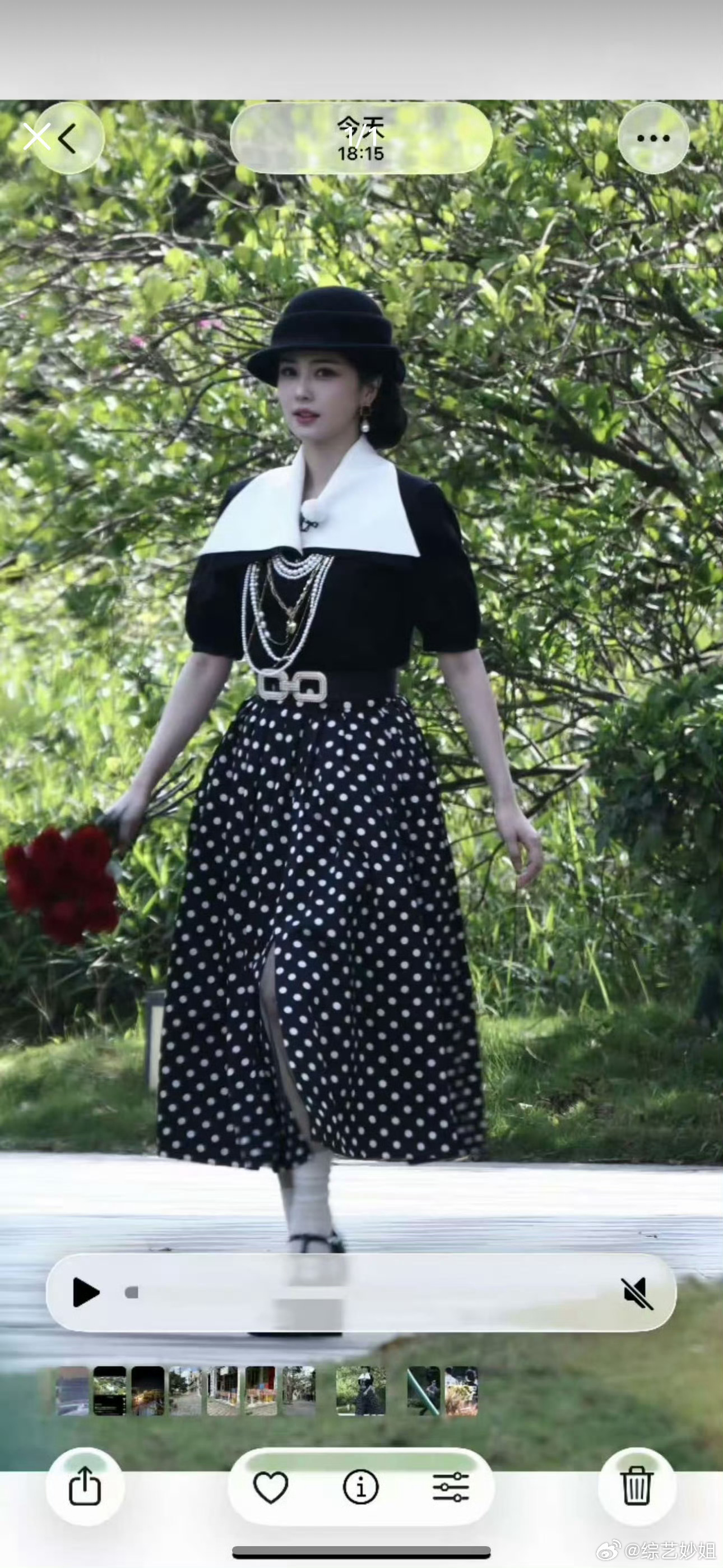 鹿儿好美吧白鹿奔跑吧造型封神现场!黑波点长裙搭配复古礼帽,气质端庄又灵动,标准的留洋大小姐,每一帧都好好看!白鹿留洋千金造型白鹿民国千金造型