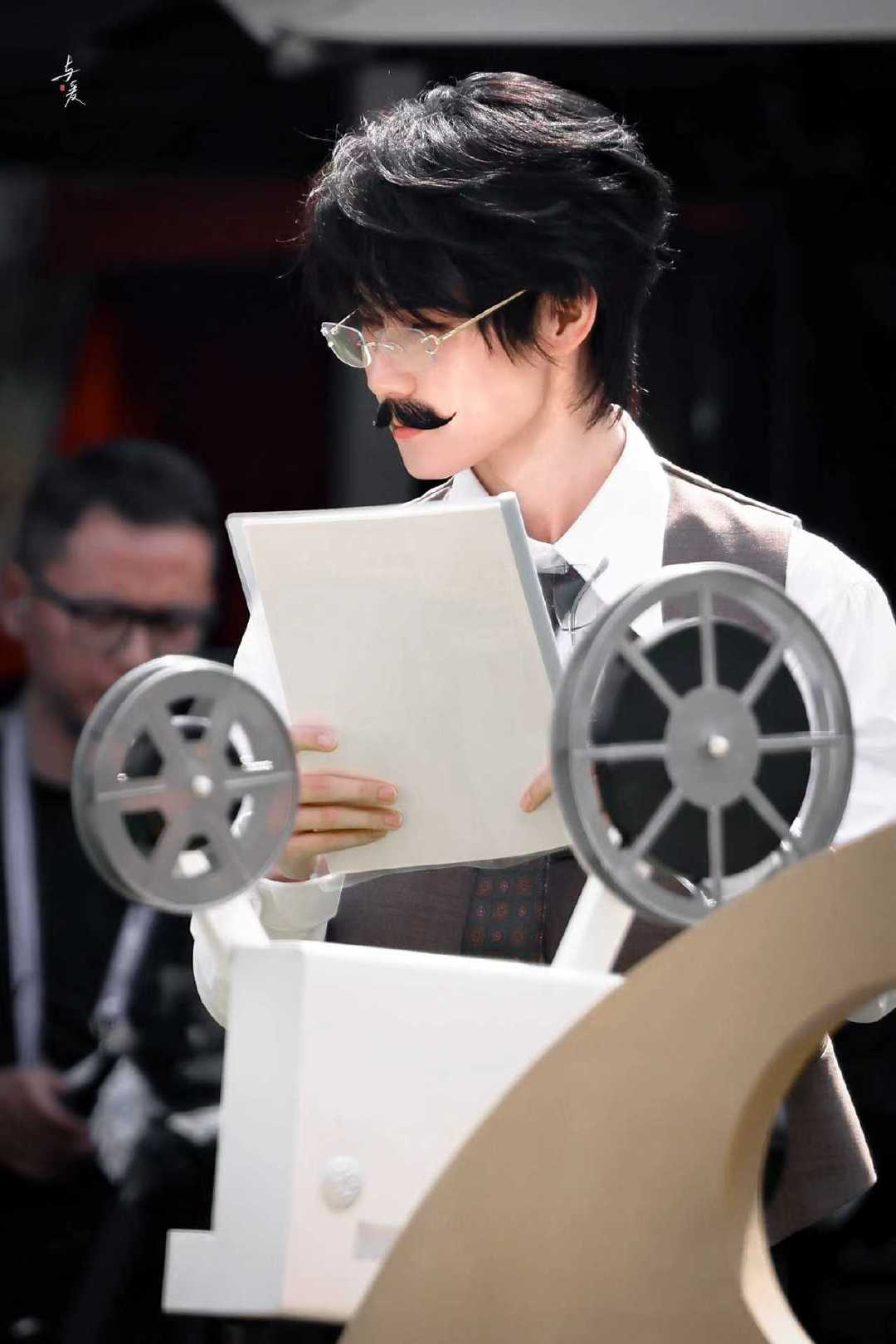 张真源八字胡造型哦莫,八字胡造型也好帅啊,真源儿玩的开心,期待节目播出呀