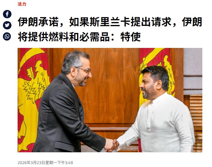 伊朗的报恩太实在!伊朗感谢斯里兰卡,发言人称,以后有什么需要就找我们,斯里兰卡缺油是不,那就拉几船去救荒,伊朗什么不多,就是油多,你们的恩情必须记得。 先说说这事儿是怎么起的头,前阵子,印度洋上那可是闹得鸡飞狗跳,美国不知道咋想的,居然派核潜艇搞突然袭击,一下子就把伊朗海军的“德纳”号护卫舰给击中了。 这护卫舰就跟断了线的风筝似的,“噗通”一下就沉到海底去了,船上的好多官兵生死不明,那场面,想想都揪心。 就在这伊朗海军急得像热锅上的蚂蚁,不知道该咋办的时候,斯里兰卡站出来了,这斯里兰卡可真够胆大的,美国那可是超级大国,谁惹它都没好果子吃,可斯里兰卡根本不管美国那一套,直接就向伊朗伸出了援手。 斯里兰卡总统迪萨纳亚克那也是顶着巨大的压力,批准伊朗受伤的“布什尔”号补给舰到他们偏远的亭可马里港去休整,而且还把舰上那208个惊魂未定的水兵都接到岸上,好好地安置下来。 这还不算完,斯里兰卡海军还出动了巡逻舰、巡逻机和直升机,在出事的海域到处找,就像大海捞针一样,最后成功救出了32名“德纳”号的官兵,还打捞出了87具遗体,你说斯里兰卡这做法,是不是特别够意思,特别有担当? 可谁能想到,风水轮流转,没过多久,斯里兰卡自己就摊上大事儿了,现在这国际局势乱得很,中东那边一闹起来,燃油航运就受影响了,国际油价也跟着蹭蹭往上涨,斯里兰卡是个岛国,啥都得靠进口,尤其是能源,那简直就是它的命根子。 这下可好,燃油进不来,国内的情况一下子就糟透了,汽油库存就够撑一天的,柴油也没剩多少,燃油一短缺,交通直接就瘫痪了,公交车、出租车都跑不了,人们出门都成了大问题。 发电也受影响,好多地方晚上都黑灯瞎火的,工厂也没法正常生产,老百姓的日子过得那叫一个苦。 伊朗可没忘了斯里兰卡在它危难时候的帮忙,伊朗的发言人直接就公开表态了,说斯里兰卡要是需要啥,尽管开口,伊朗别的没有,就是石油多,要拉几船燃油过去救急。 这话说得那叫一个实在,就像咱老百姓之间互相帮忙一样,没有那些虚头巴脑的东西。 我觉得伊朗和斯里兰卡这事儿,就跟黑暗里的一盏明灯似的,让人看到了希望,现在这国际上,好多国家都只想着自己的利益,为了争点资源、抢点地盘,打得不可开交。 可斯里兰卡它就不管那些,就认准了人道主义和国际道义,在伊朗最需要帮助的时候,勇敢地站了出来,这种勇气和担当,真的特别让人佩服。 伊朗也是个知恩图报的主儿,自己国家也有一堆事儿要处理,可还是想着要回报斯里兰卡的恩情,这就告诉咱,做人得讲良心,别人帮了咱,咱就得记在心里,有机会一定要还回去。 这两个国家的事儿,也给其他国家提了个醒,在国际关系里,不能光盯着那点利益,还得有点人情味儿,要是大家都像伊朗和斯里兰卡这样,互相帮助,互相支持,那这世界不得变得美美的。 说不定以后国家之间有啥矛盾,坐下来好好商量商量,就能解决了,哪还用得着打来打去的,真心希望这样的温暖事儿能越来越多,让咱这地球村变得更和谐、更美好。