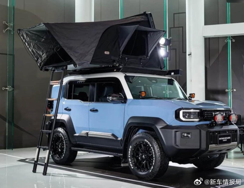 2、Nature Explorer(自然探索版):主打户外露营生活方式。车身采用双色涂装与专属贴花,顶部加装了车顶帐篷和侧边遮阳篷,并配备了辅助照明灯,完美适配野外露营需求。
