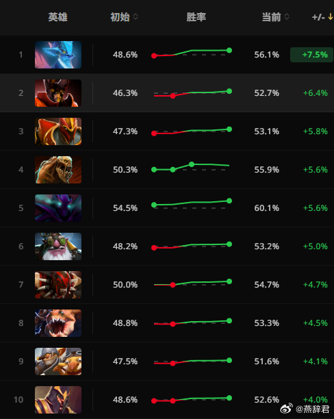 新版本7.41更新以来胜率变化最大的10个英雄,老鹿版本最大赢家啊!Doom、龙骑、小狗、幽鬼胜率都提高很多dota2