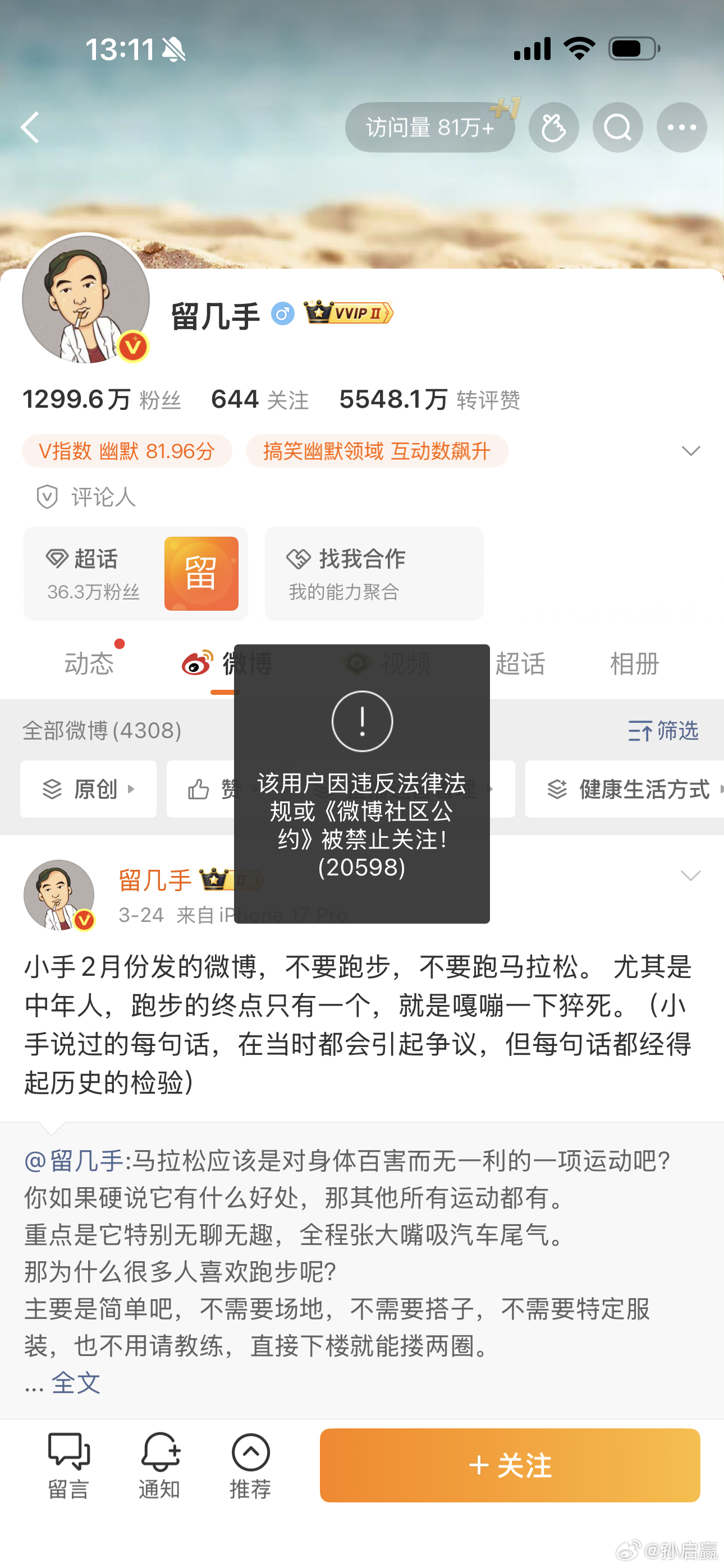 葛晓倩怒怼留几手好奇留几手说了什么,竟然被禁止关注,一看原来是昨晚发的一条微博。