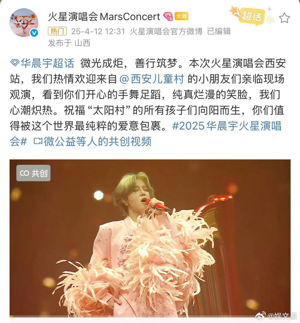 华晨宇的格局 从舞台光芒到公益担当,华晨宇一直走在正能量前沿。火星乐园演唱会2.