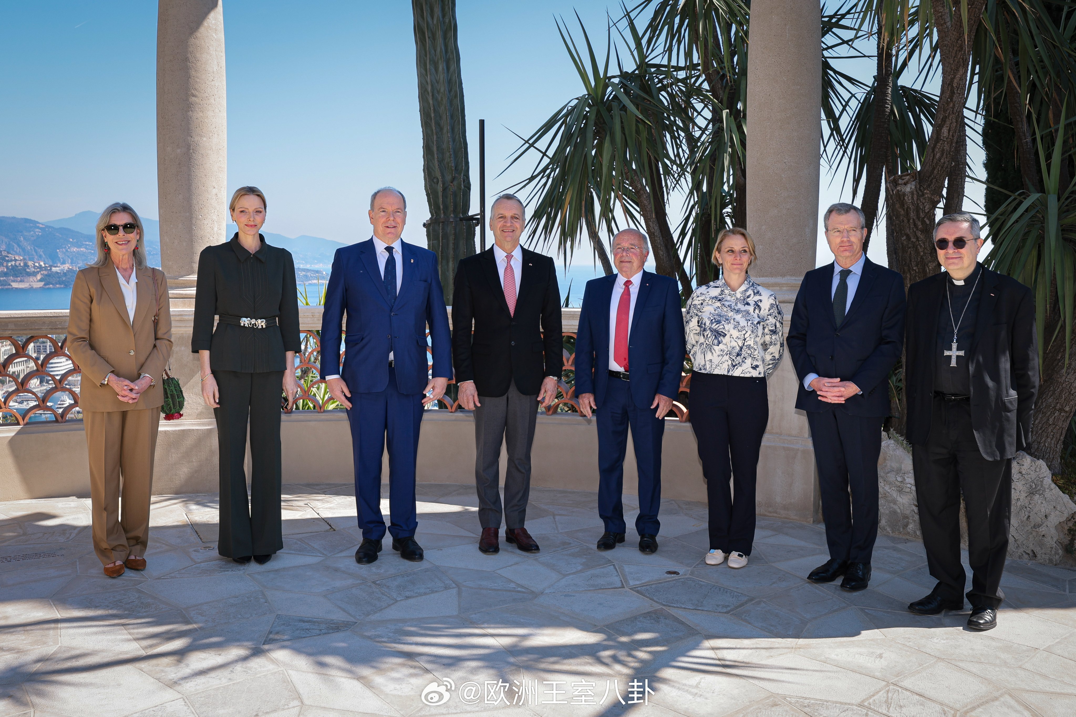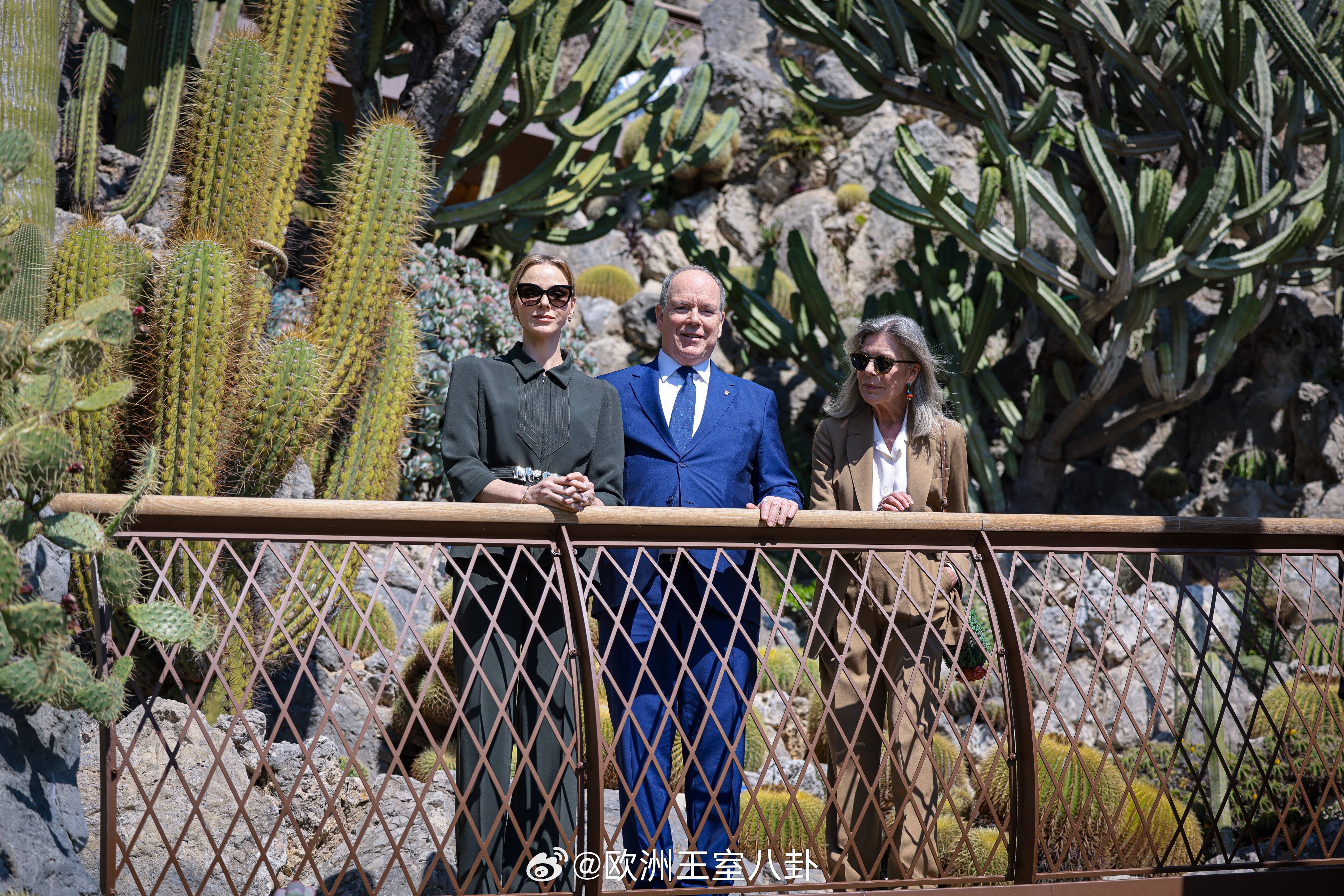3.25 摩纳哥亲王阿尔贝二世、王妃夏琳和卡洛琳公主出席异国花园重开仪式(这花园有90多年历史,之前关了6年)夏琳裤装来自elie saab