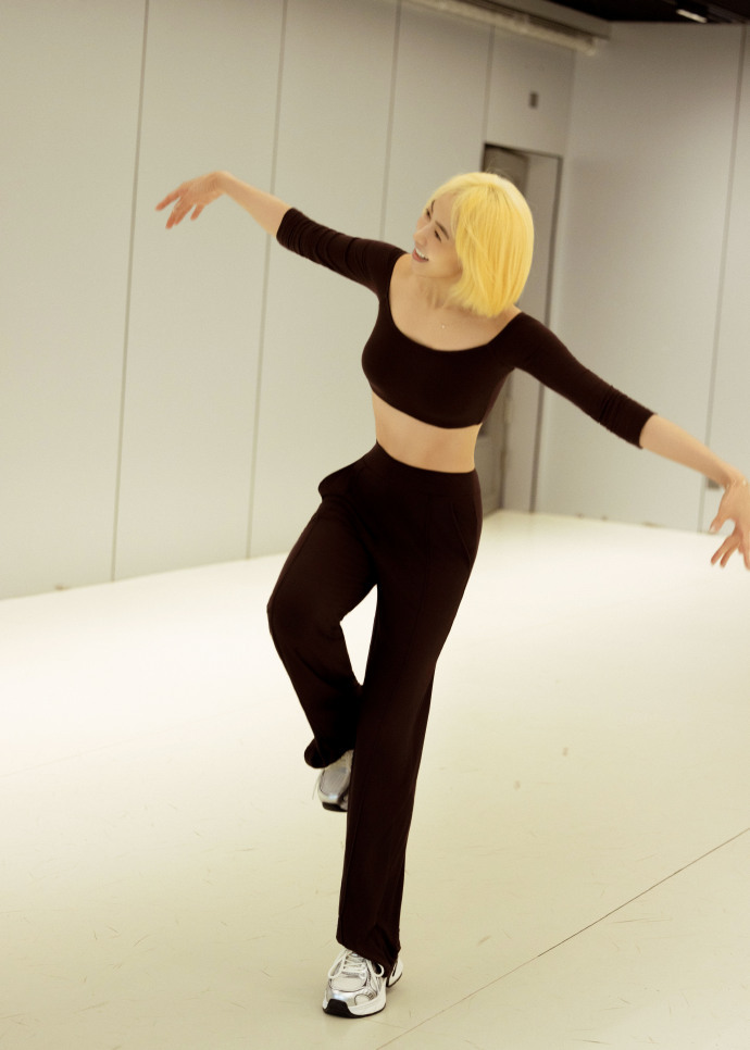 宋茜素颜也能抗住金发造型 素颜出镜依旧明艳,金发衬得五官更立体,练舞室里的每一个
