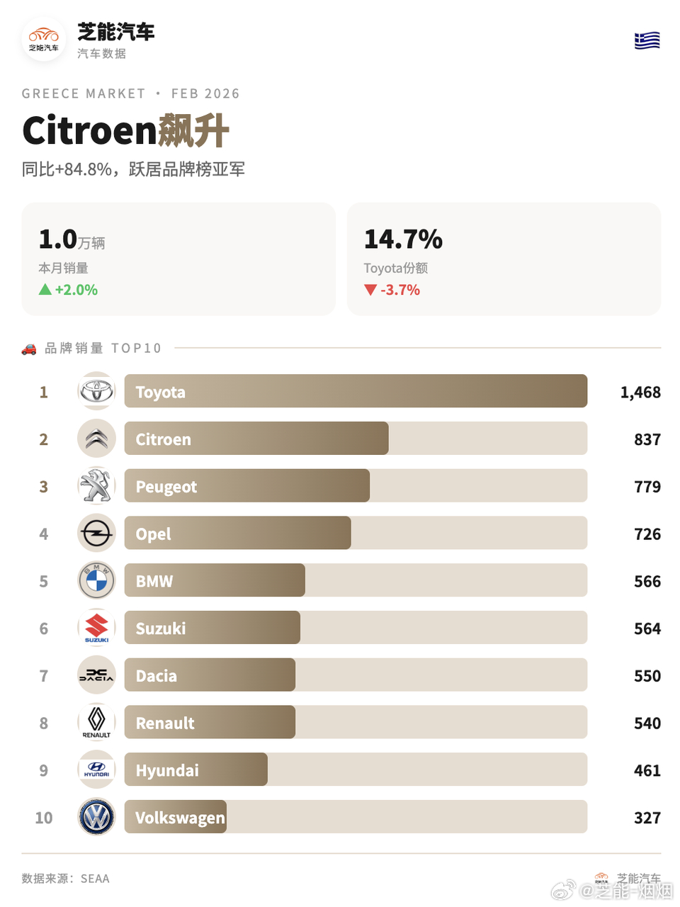 2 月希腊车市小幅回暖,经济型小车依旧是市场主力。