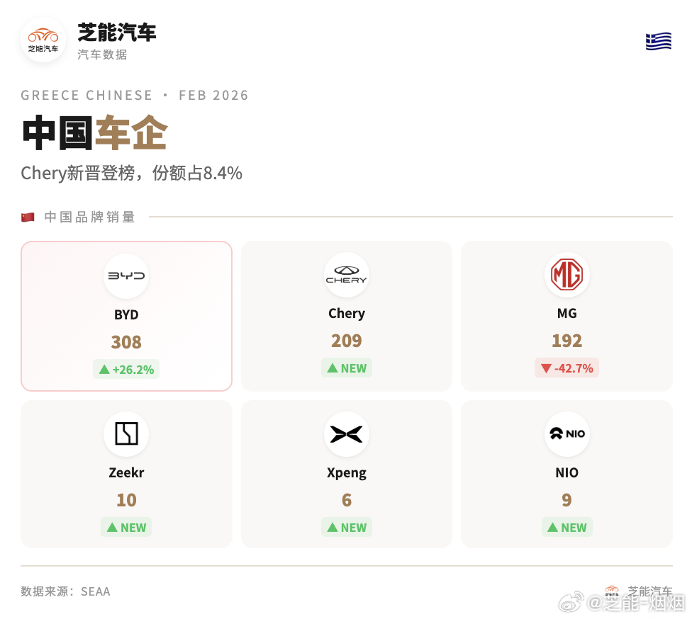 中国品牌份额提升但内部分化明显,比亚迪增长稳健,奇瑞新晋表现突出,名爵有所回调,新势力尚处导入期。