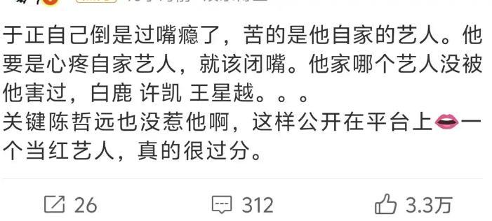 有点看不懂陈哲远的操作了。 拍《江山为聘》时,内涵陈哲远最多的人是于正, 说