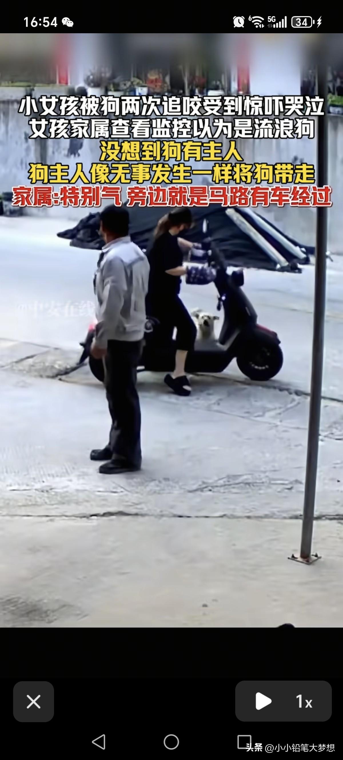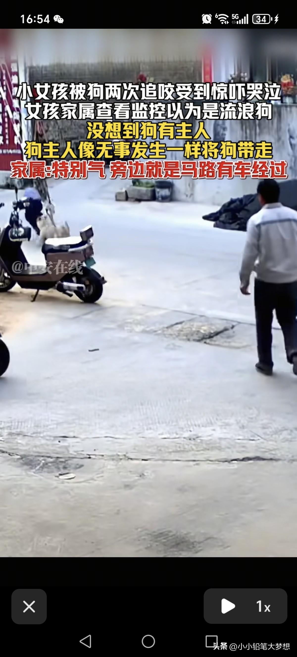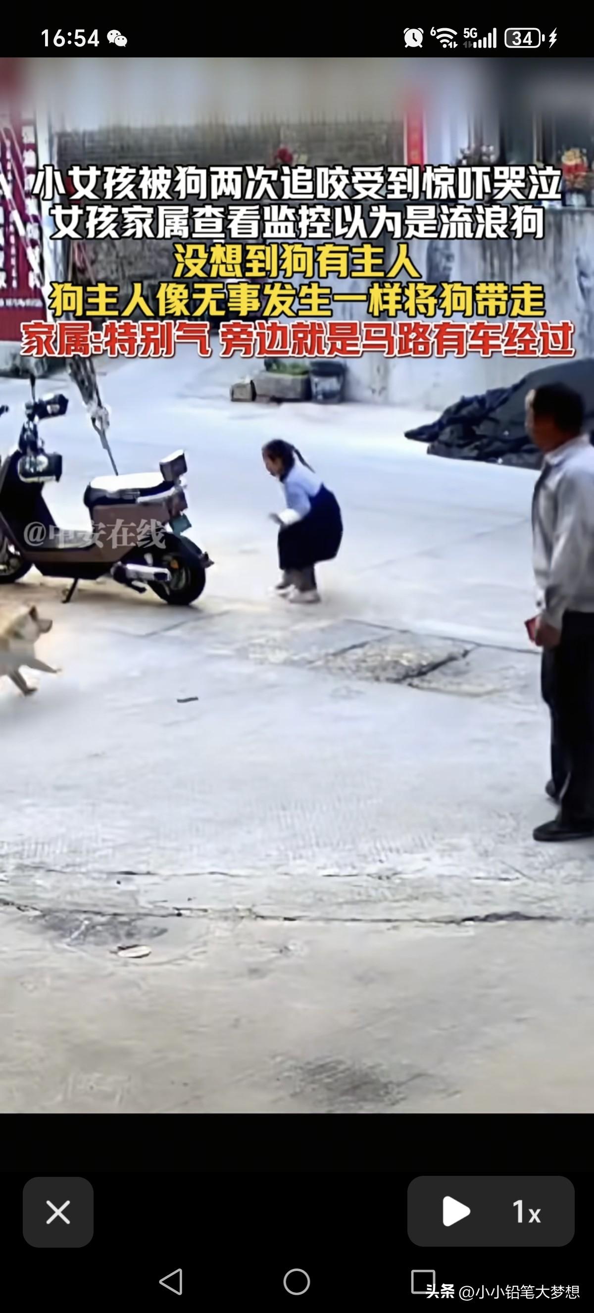 这就是所谓养狗人的素质,真是太离谱了!3月25号,福建,小女孩被狗两次追咬,没想到狗的主人出现并看到这一幕之后,当做没事发生,直接开车淡定的把狗直接带走了! 从视频中我们可以看到一个穿蓝色衣服黑色小裙子女童一边跑一边大哭,原来后面有一条狗紧追着她,小女孩惊慌失措跑,撕心裂肺的哭喊的声音听得令人心痛。 小女孩跑到了公路旁,这个时候一个老人出现,手里面拿着一块砖头,狗看见了这个老人之后就没继续往前追了,小女孩就停了下来往回走,这条狗看见小女孩往回走了,又想冲上前追咬小女孩,老人立马对着这条狗大声呵斥,旁边的小女孩也被吓得一哆嗦。 本以为有这个老人在,这条狗就不会再追着小女孩,当时小女孩站在公路旁观望,她也以为狗不会再追上来了,但不到两秒钟的时间,这条狗猛地冲上来继续追着女孩,小女孩吓得拔腿就跑,老人看到这一幕就在后面继续呵斥,这个时候一个女人骑着一辆电动车出现了并且停了下来,狗看到了自己的主人,立刻就停止追小女孩并折回跑,还直接上这个女人的车,这个女人头也不回撵着电门就跑了,这动作一气呵成,不带一点停顿的。 后来家属知道女儿被狗追咬,本以为是流浪狗,但后查了监控,看了监控之后十分生气,原来这条狗是有主人的,而且这条狗主当时明明看到自己女儿被追咬,却无动于衷,直接开着电车就把狗接走。 家属还称旁边是条是马路啊,如果旁边有车刚好路过撞上了就后果不堪设想了。 是啊,小女孩被吓得惊慌失措根本就不会去看路,万一真的被车碾压了就完了。 这个狗的主人也真冷漠,明明看到自己的狗追咬人了,正常都会下车安慰一下女孩,看一下她身上有没有被咬到,然后通知女孩的家属,如果有受伤,该赔偿的赔偿,该道歉的道歉。 希望这个视频当地公安看见之后,能够立刻行动吧,查出这个狗主人,并且对其进行教育和罚款,并且对小女孩进行精神赔偿。 你喜欢养宠物,没有问题,但得首先保证它不会对他人生命安全造成威胁,狗咬人事件屡次发生,说白了狗主人素质有问题,相关的法律处罚力度不高,监管不到位,如果这个处罚力度跟被咬人一样疼,那才能真正起到震慑的作用,还有那些狗主如果做不到文明养狗,那就不要养了,直接毙了得了!