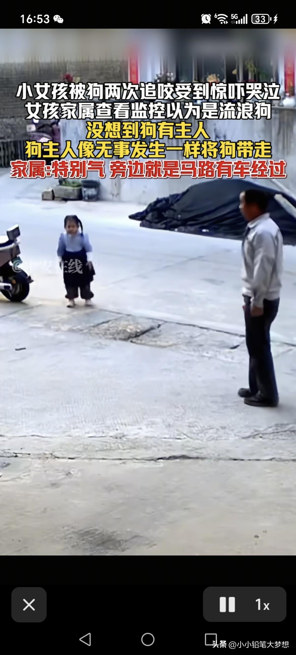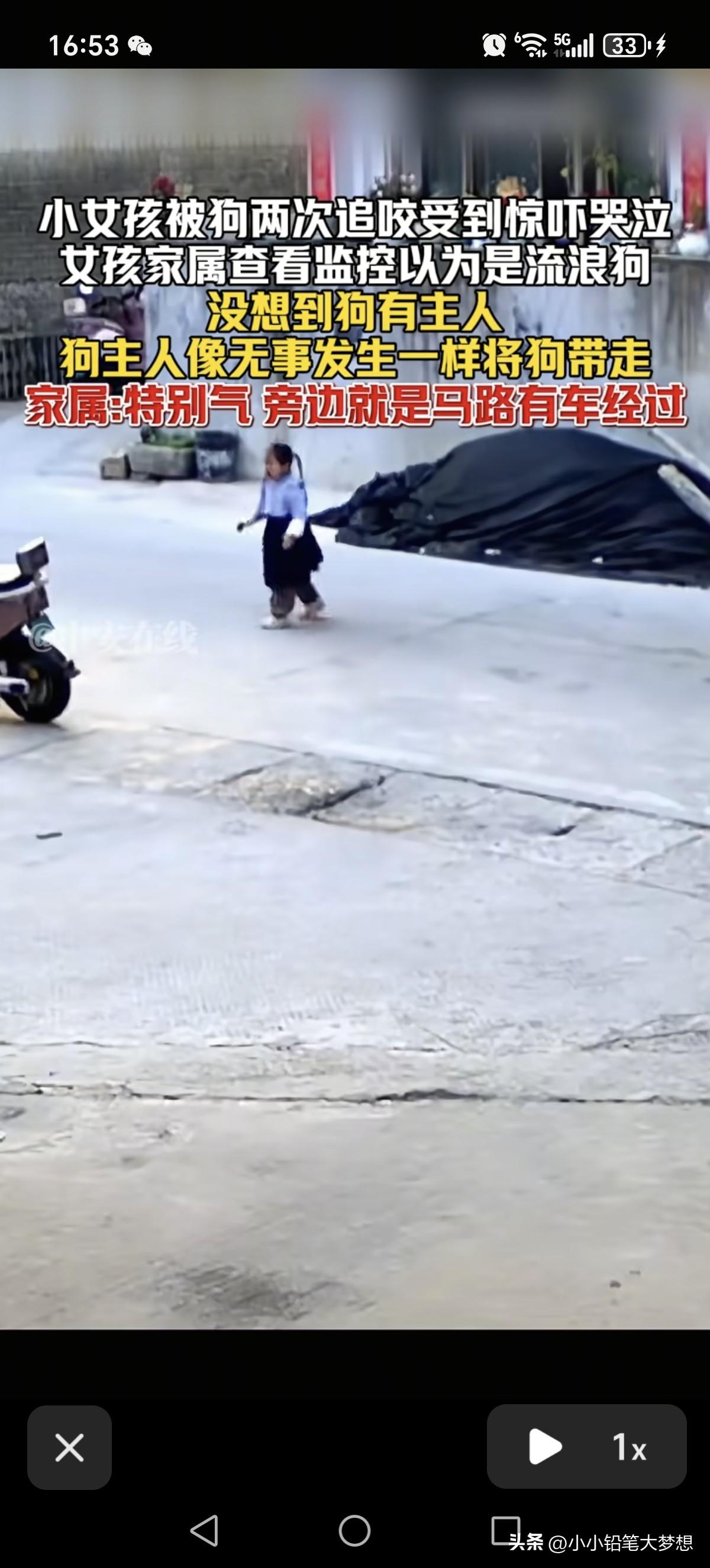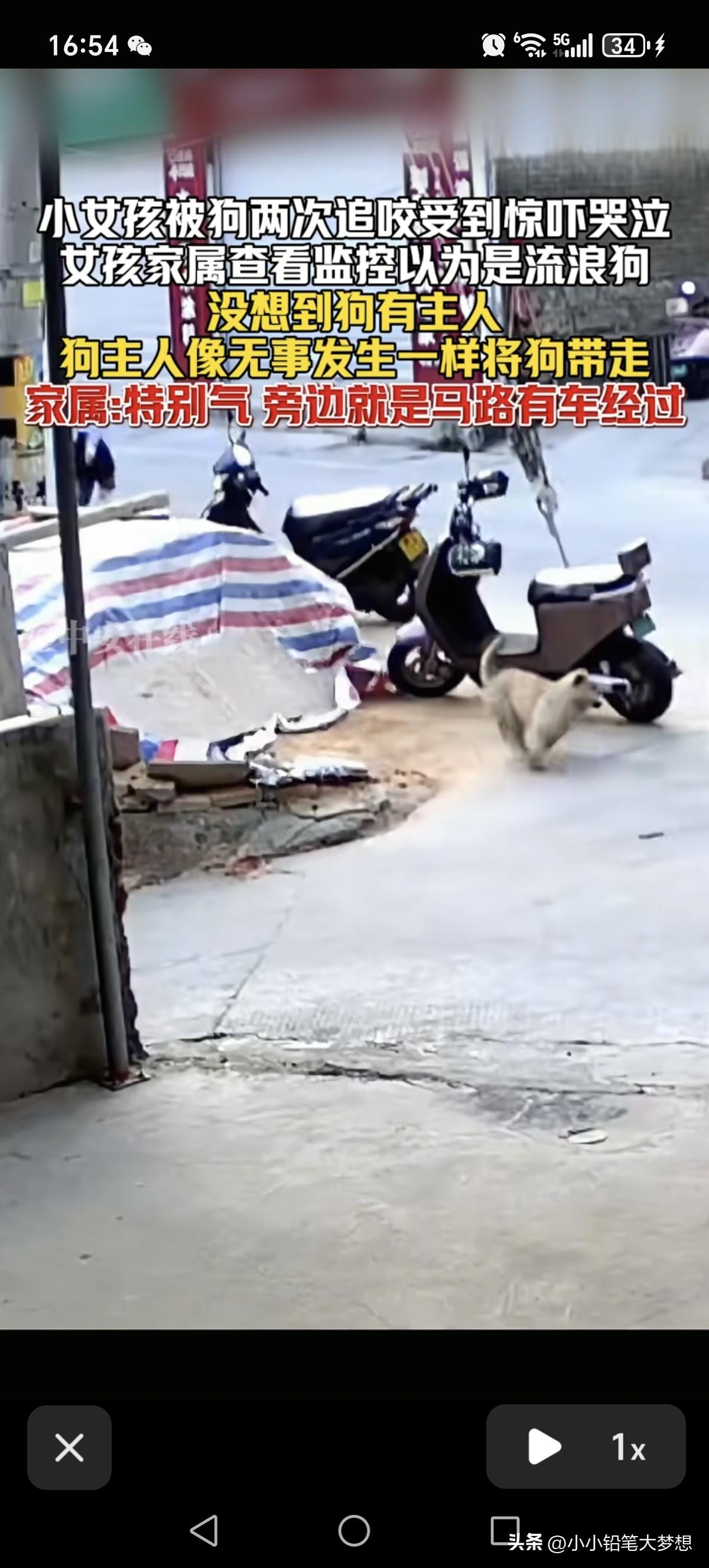 这就是所谓养狗人的素质,真是太离谱了!3月25号,福建,小女孩被狗两次追咬,没想到狗的主人出现并看到这一幕之后,当做没事发生,直接开车淡定的把狗直接带走了! 从视频中我们可以看到一个穿蓝色衣服黑色小裙子女童一边跑一边大哭,原来后面有一条狗紧追着她,小女孩惊慌失措跑,撕心裂肺的哭喊的声音听得令人心痛。 小女孩跑到了公路旁,这个时候一个老人出现,手里面拿着一块砖头,狗看见了这个老人之后就没继续往前追了,小女孩就停了下来往回走,这条狗看见小女孩往回走了,又想冲上前追咬小女孩,老人立马对着这条狗大声呵斥,旁边的小女孩也被吓得一哆嗦。 本以为有这个老人在,这条狗就不会再追着小女孩,当时小女孩站在公路旁观望,她也以为狗不会再追上来了,但不到两秒钟的时间,这条狗猛地冲上来继续追着女孩,小女孩吓得拔腿就跑,老人看到这一幕就在后面继续呵斥,这个时候一个女人骑着一辆电动车出现了并且停了下来,狗看到了自己的主人,立刻就停止追小女孩并折回跑,还直接上这个女人的车,这个女人头也不回撵着电门就跑了,这动作一气呵成,不带一点停顿的。 后来家属知道女儿被狗追咬,本以为是流浪狗,但后查了监控,看了监控之后十分生气,原来这条狗是有主人的,而且这条狗主当时明明看到自己女儿被追咬,却无动于衷,直接开着电车就把狗接走。 家属还称旁边是条是马路啊,如果旁边有车刚好路过撞上了就后果不堪设想了。 是啊,小女孩被吓得惊慌失措根本就不会去看路,万一真的被车碾压了就完了。 这个狗的主人也真冷漠,明明看到自己的狗追咬人了,正常都会下车安慰一下女孩,看一下她身上有没有被咬到,然后通知女孩的家属,如果有受伤,该赔偿的赔偿,该道歉的道歉。 希望这个视频当地公安看见之后,能够立刻行动吧,查出这个狗主人,并且对其进行教育和罚款,并且对小女孩进行精神赔偿。 你喜欢养宠物,没有问题,但得首先保证它不会对他人生命安全造成威胁,狗咬人事件屡次发生,说白了狗主人素质有问题,相关的法律处罚力度不高,监管不到位,如果这个处罚力度跟被咬人一样疼,那才能真正起到震慑的作用,还有那些狗主如果做不到文明养狗,那就不要养了,直接毙了得了!