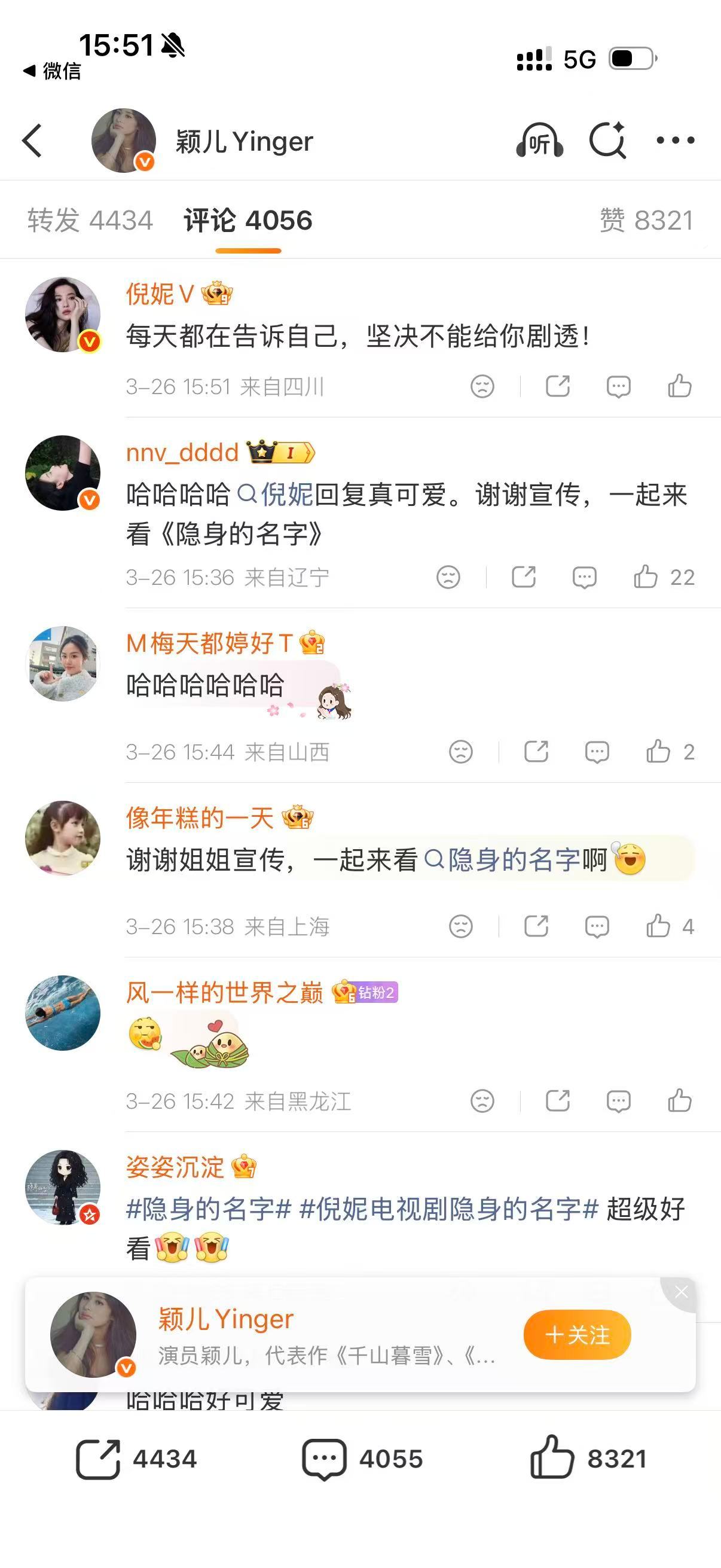 倪妮摇来了影帝影后视帝视后 的转发区含金量有。从《隐身的名字》里走出的任小名,迎