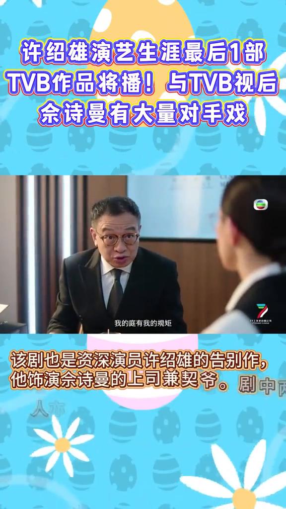 法庭是不是能把过名少年? 许绍雄演艺生涯最后1部TVB作品将播!与TVB视后余诗曼有大量对手戏。TVB新剧《正义女神》发布预告,佘诗曼饰演法官言惠知霸气回归。谭耀文时隔二十年回巢出演检控专员,与诗曼演绎职场搭档及前夫妻关系,两人精彩对手戏引发观众高度期待与合作。 该剧也是资深演员许绍雄的告别作,他饰演佘诗曼的上司兼契爷。剧中两人亦师亦友,情感深厚动人。许绍雄招牌笑容令网友不舍,纷纷承诺会认真欣赏这位老戏骨的最后作品。