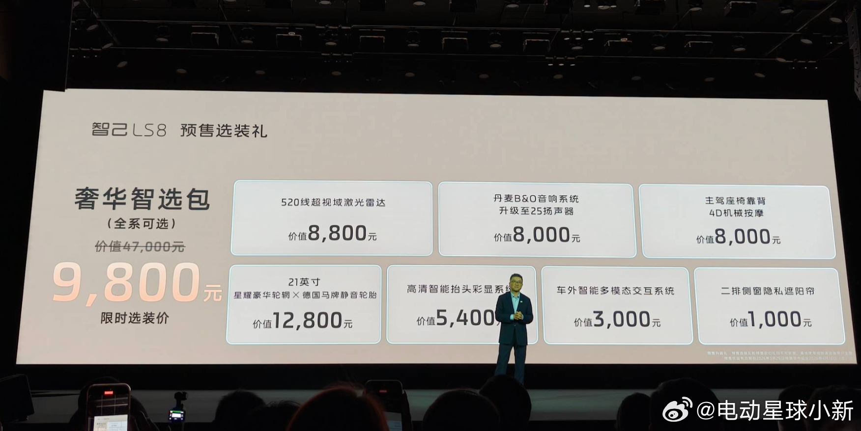 另外,还有价值 9800 元的「尊享包」,可以选 520线激光雷达等等。