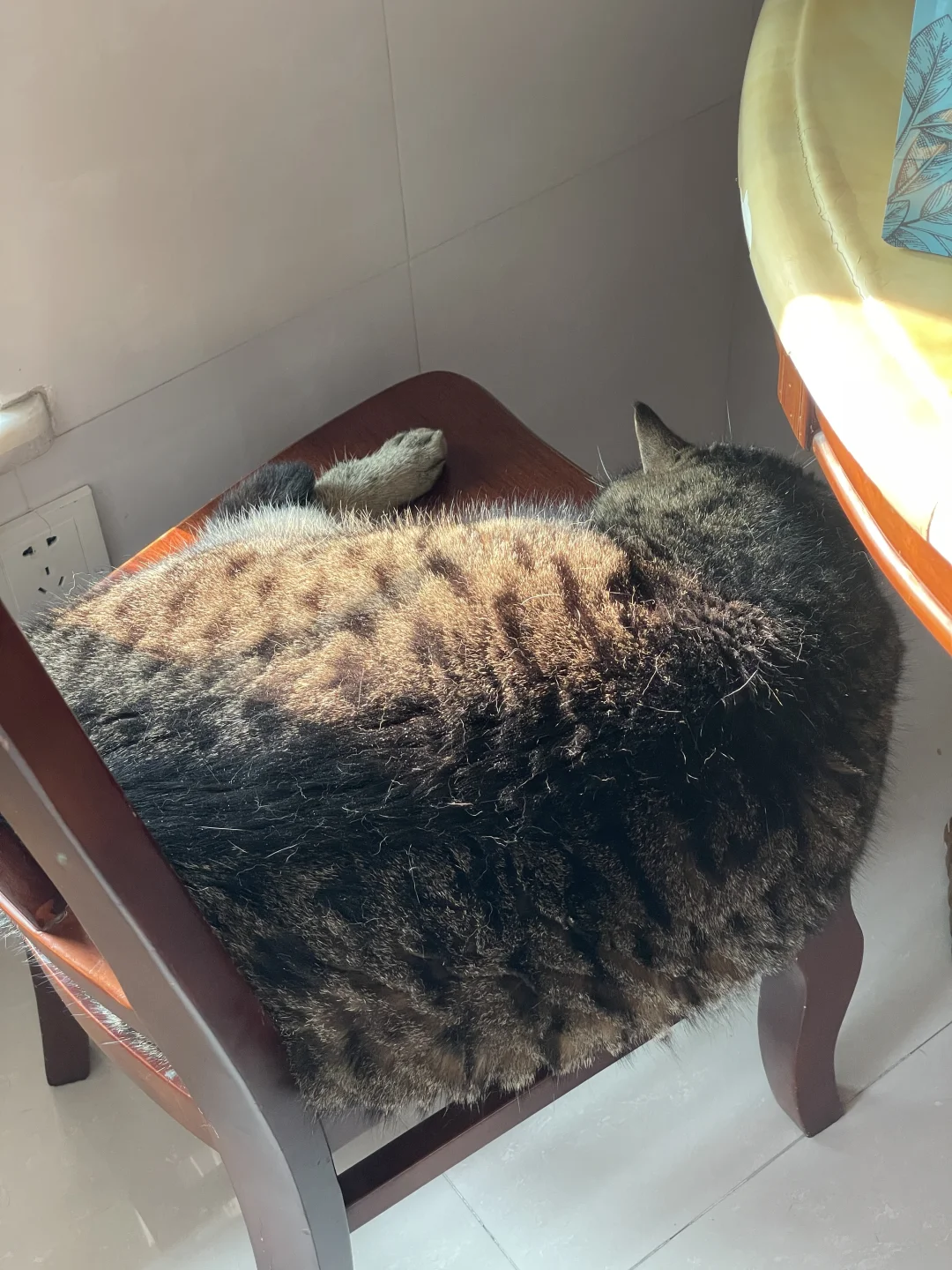 人类早起要上班,阿弟早起晒太阳(不对他没起)不跑不跳就在这把椅子上,把自己盘成了一个毛茸茸的团子🍡🍡🍡🍡🍡🍡🍡