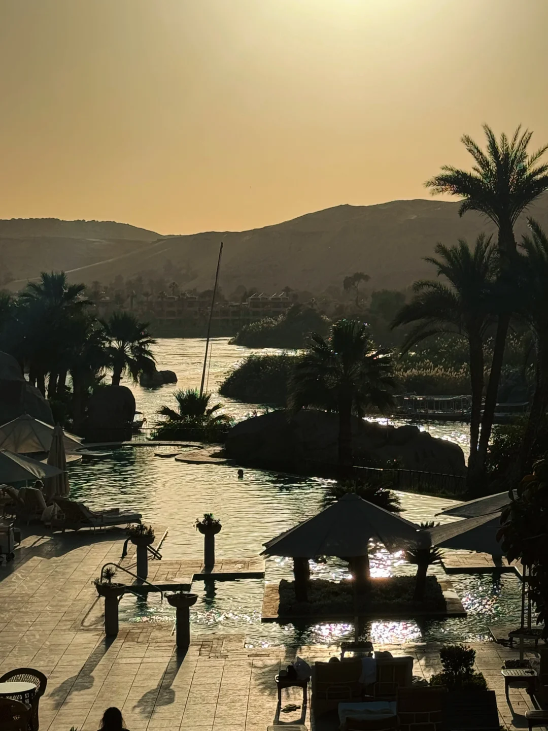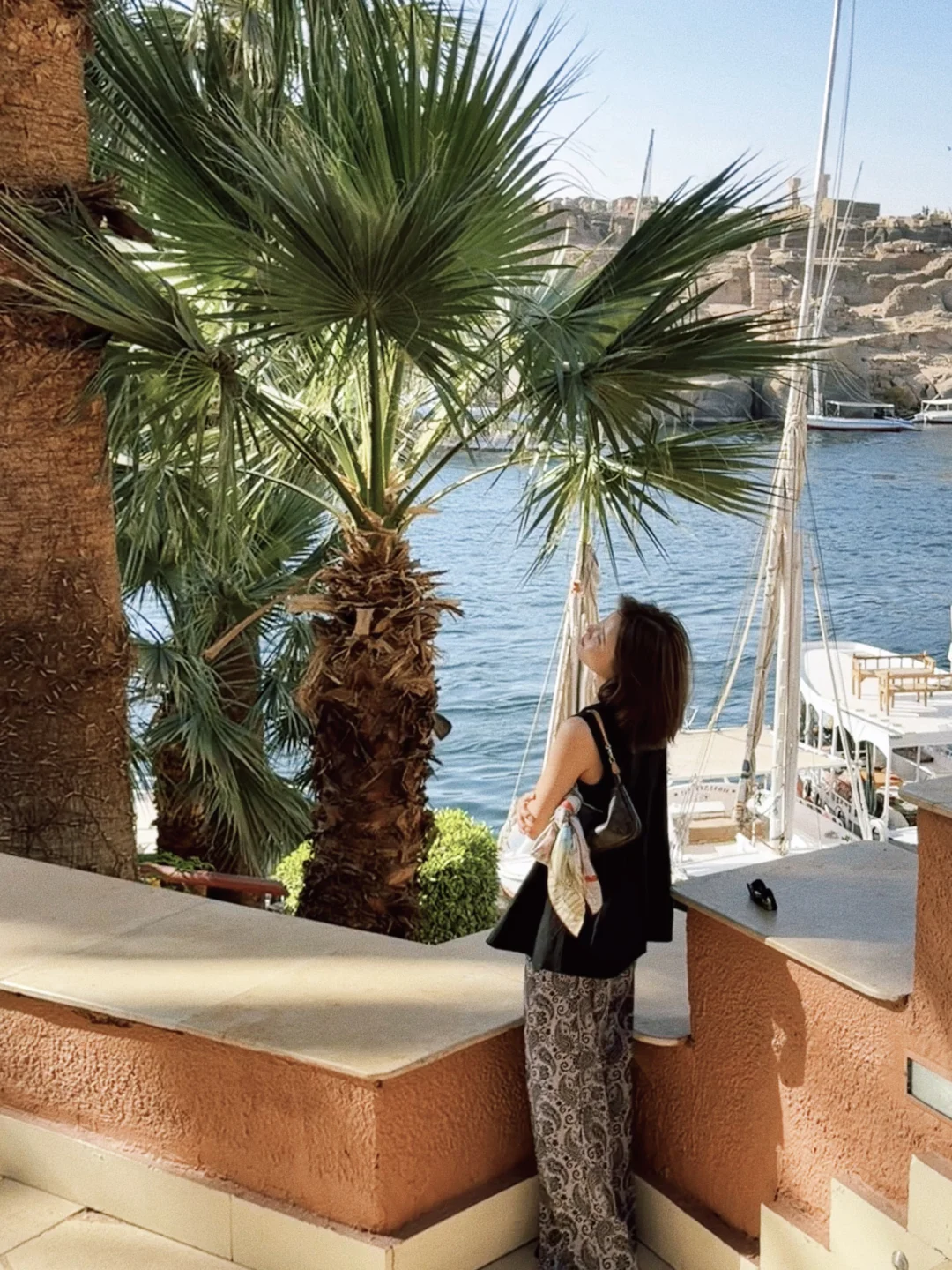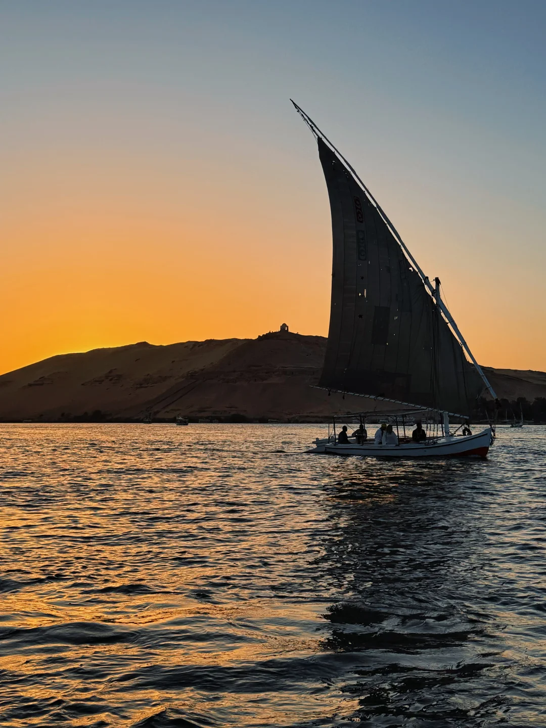 Day6:抵达阿斯旺,下午老瀑布酒店下午茶或者吃东西都可以,低消1500埃镑每人,非常晒,而且位置不好,好位置只留给住店客人,好在菜品口感还不错,傍晚帆船游尼罗河400埃镑一个船一小时,可以参考去码头找船即可