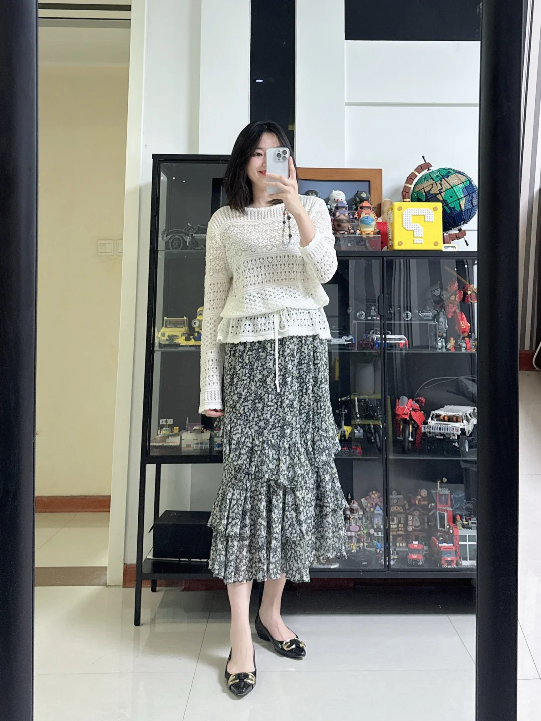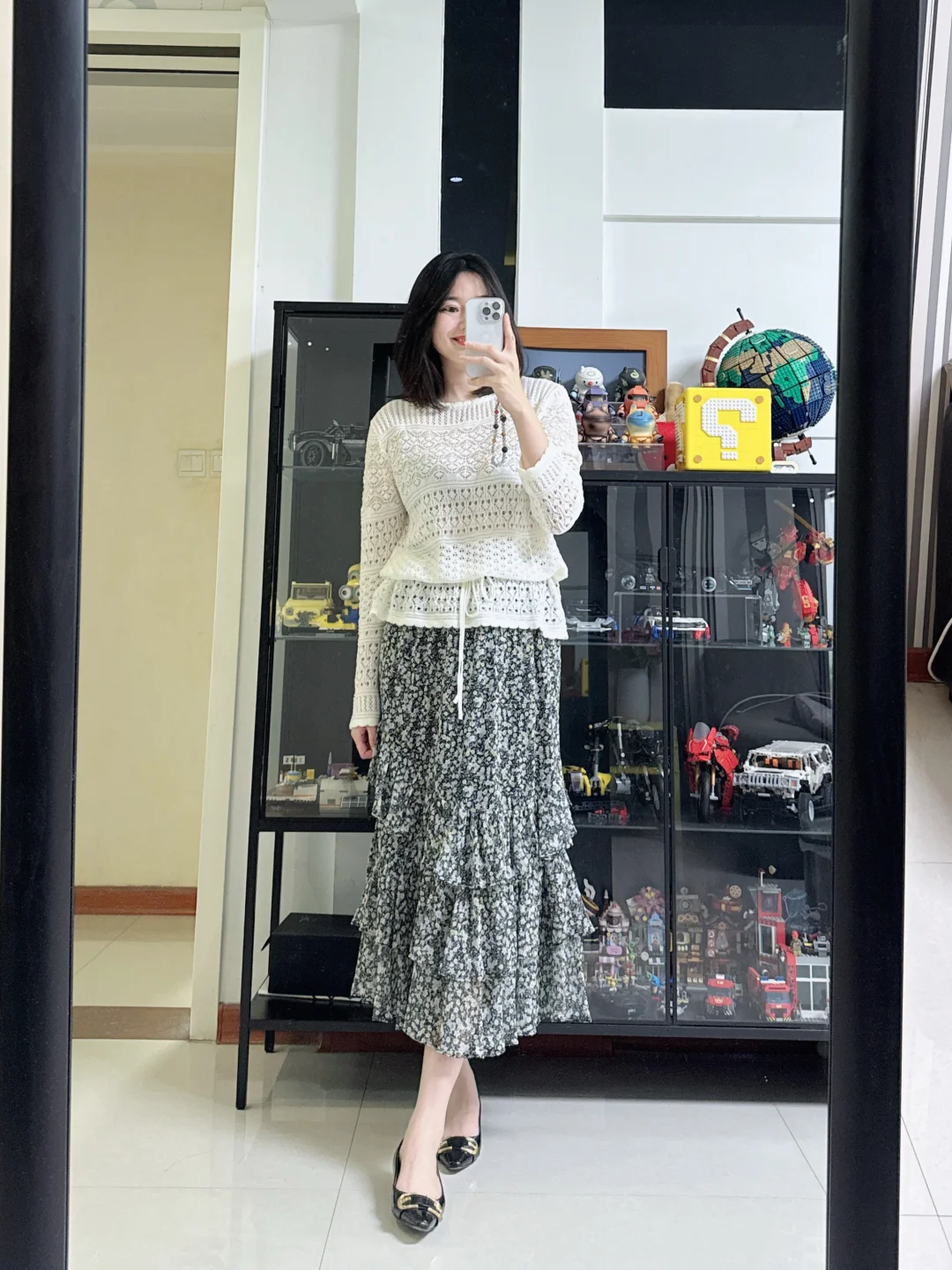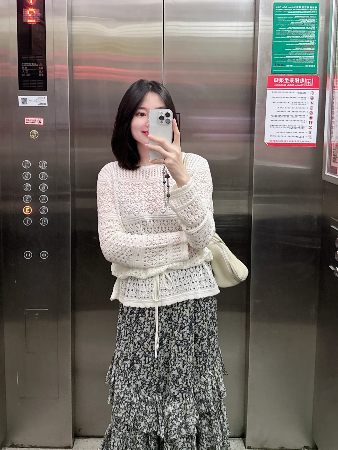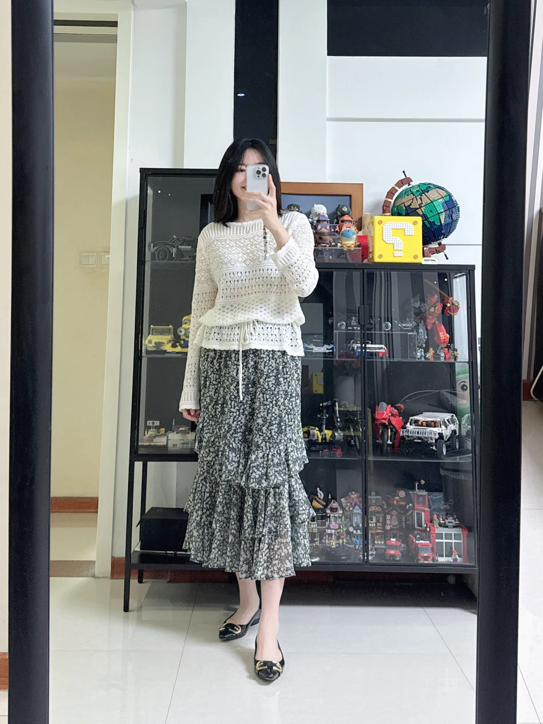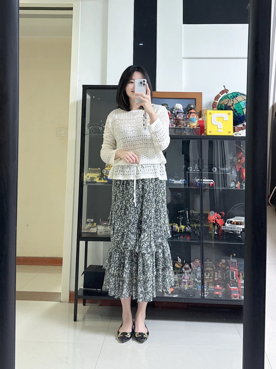 穿搭推荐:真的到了穿美裙的季节,碎花半裙搭配针织衫,外面加一件风衣,日常通勤都很ok~