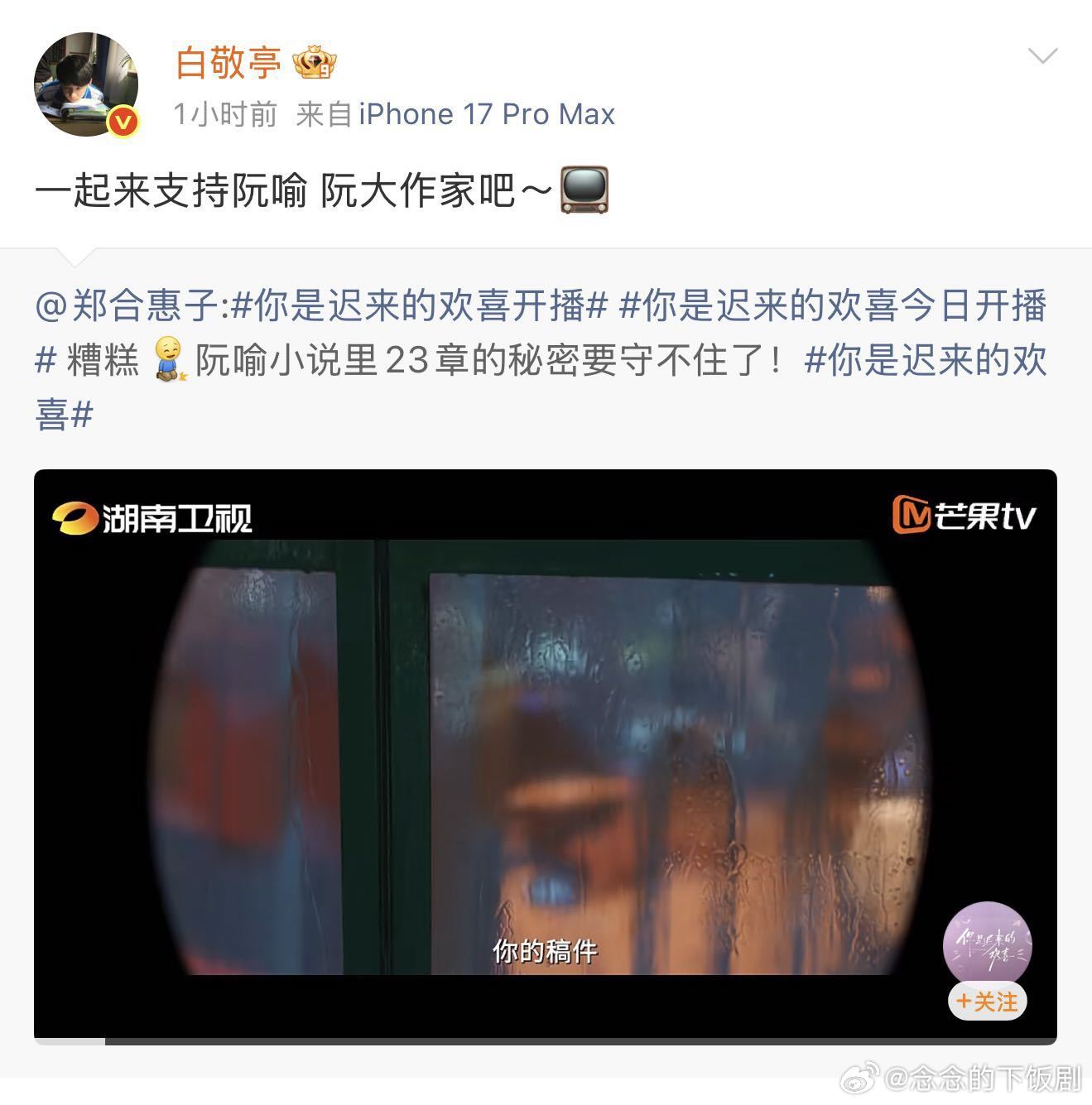 你是迟来的欢喜 我的评分:白敬亭郑合惠子互动白敬亭宣传你是迟来的欢喜你是迟来的欢喜 爷青回!阮喻和任大队长同框互动,这含金量谁懂啊!郑合惠子现偶剧太甜了,颜末的白月光滤镜至今还在,追起来!