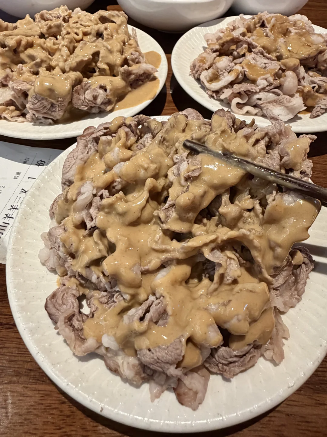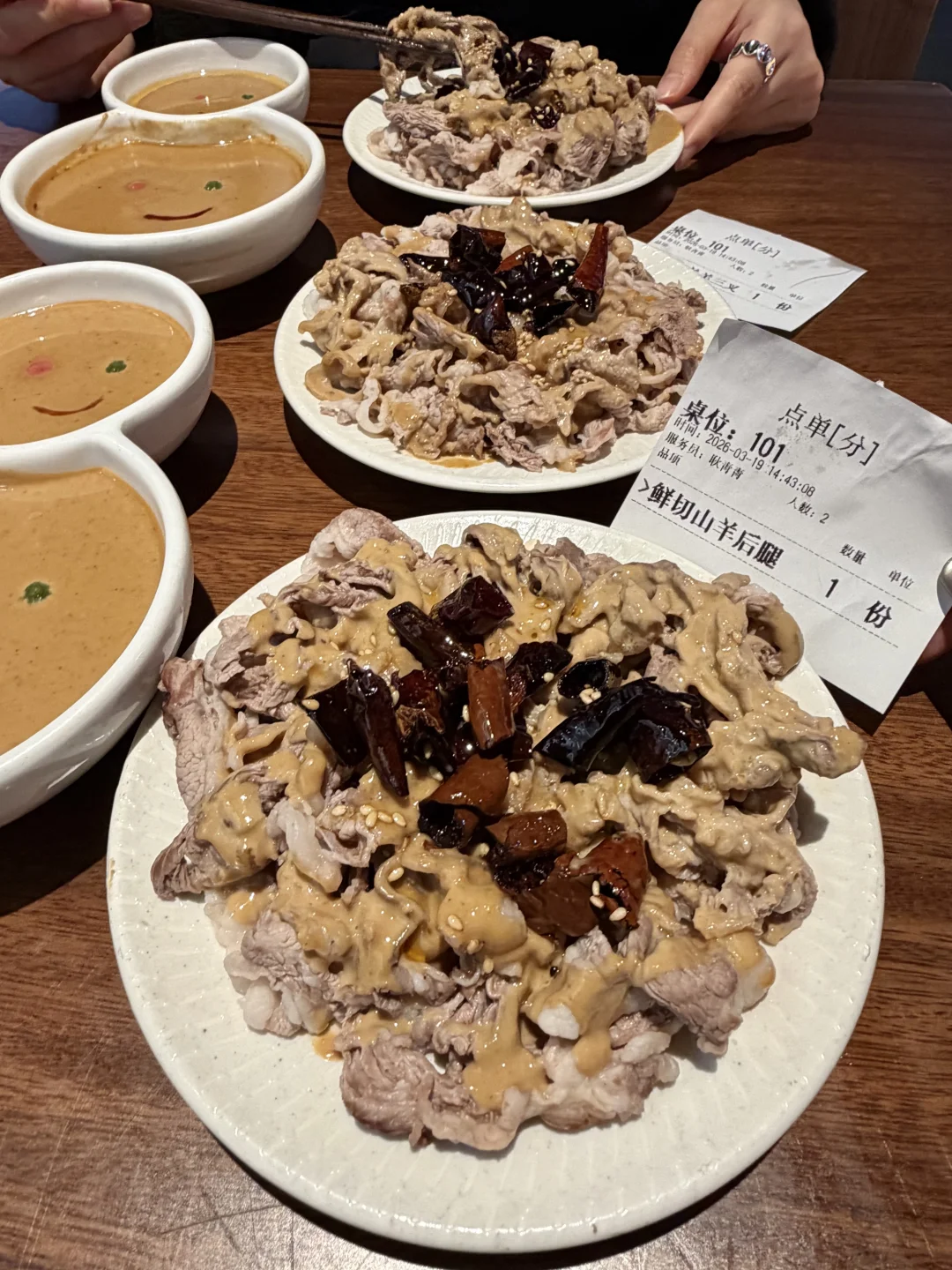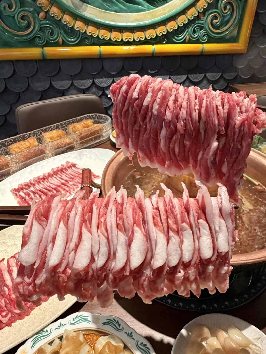 就在西溪天街!!这羊肉真的是“打飞的”来的,从鄂尔多斯草原到杭州就为了这一口鲜!明档切肉,纹理清晰~ 下锅涮几秒就变色,入口嫩到弹牙,一点都不膻,连我不爱吃羊肉的朋友都夸绝! 还有奶皮子鲜羊肉汉堡、羊肉饺子一定要试试!