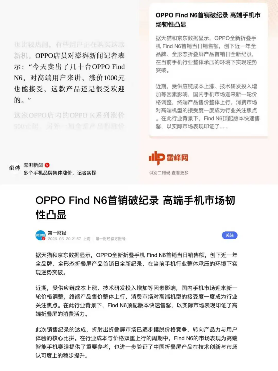 📱 Find N6折叠屏:一手无感折痕久用也平整,加上全能体验,首销日就创下全品牌折叠屏销售额纪录,1TB版本一度缺货!
