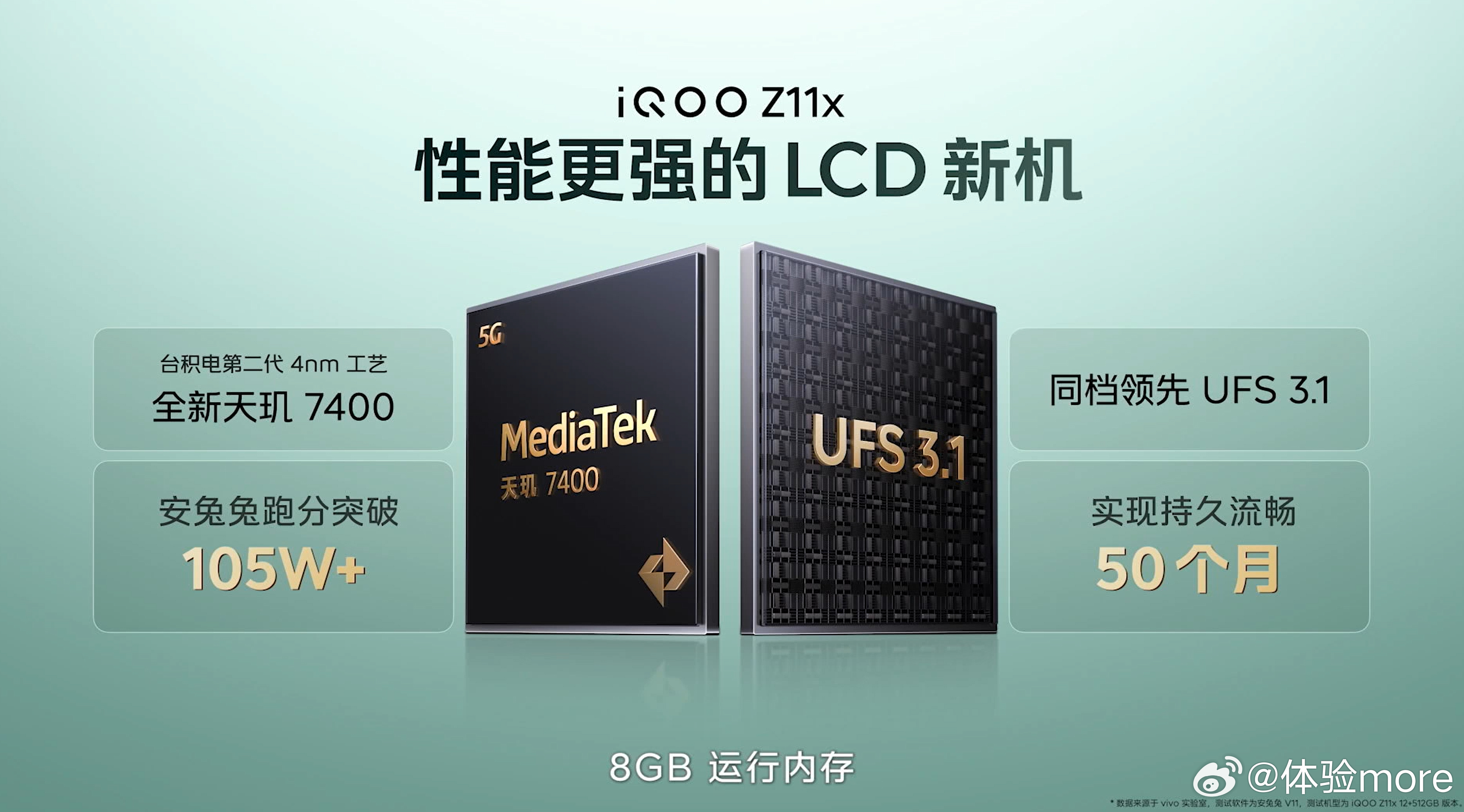 天玑7400 Turbo+LPDDR4X+ UFS 3.1,持久流畅。