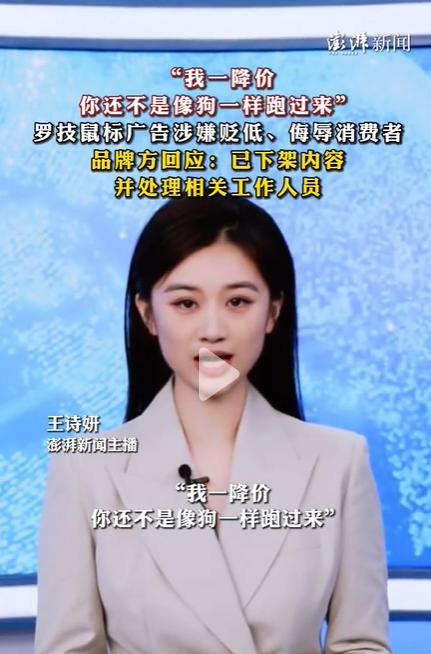 “我一降价,你还不是像狗一样跑过来”,罗技这广告谁写的?我用了好几年罗技鼠标,这次真被恶心到了 罗技最近翻车了。 有网友晒出罗技的一则广告文案,上面写着:“我一降价,你还不是像狗一样跑过来。” 把消费者比作狗?这谁写的? 我用了好几年罗技鼠标,从MX Master到G系列,一直觉得产品不错。这次看到这广告,真被恶心到了。你卖东西的,凭什么骂我? 网友直接炸了:“我买你东西,你给我当大爷?”“这文案是认真的吗?”“罗技这是不想卖货了?” 罗技赶紧回应:广告内容已下架,相关工作人员已处理。 但网友不买账。有人说,道歉就完了?这种侮辱消费者的广告,是怎么过审的?从文案到设计到审核,一层层都没人觉得有问题?审核的人脑子进水了吗? 罗技做外设的,鼠标键盘口碑一直不错。但这波操作,直接把好感败光了。 有网友说,降价是好事,但把消费者当狗,这价格再低我也不买。 也有人调侃:罗技这是嫌自己活得太久了。 品牌做广告,可以幽默,可以夸张,但底线不能丢。把消费者当傻子、当狗,这是自掘坟墓。 文案可以接地气,但不能接地府。罗技这次翻车,给所有品牌提了个醒。