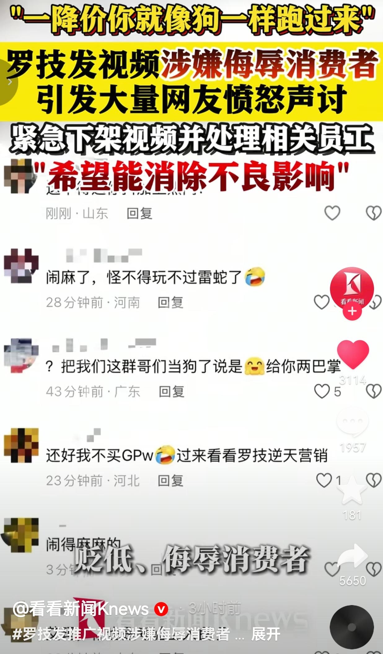 太恶劣了!谁能想到,一个做了几十年的大牌,居然能把“顾客是上帝”这句话,直接改成“顾客是条狗”? 3月25号,罗技官方旗舰店发了个推广视频,本来是想吹自家GPW3鼠标,结果里面的台词直接把人看傻了:“当我一降价,你还不是像狗一样跑过来”。 就这一句话,瞬间炸了锅。你想想,你攒了好久钱,蹲了好几个月活动,就等个降价好入手,结果在品牌眼里,你这叫“像狗一样跑过来”? 这哪是卖货,这是把所有信任它的玩家、消费者,按在地上狠狠踩脸啊! 视频刚发出来没多久,评论区直接被愤怒的网友冲爆了,有人气得直接卸载APP,有人说以后再也不会碰罗技任何产品,还有人翻出以前被割韭菜的经历,越想越委屈。 有的网友说:“我之前原价买的,现在降价了还得被你骂是狗?合着早买是冤种,晚买是狗是吧?” 也有的网友说:“怪不得干不过雷蛇,就这情商,能活这么久都是奇迹!” 还有的网友说:“第一次见品牌方骂用户的,罗技你是真敢说,也是真不怕死!” 也有的网友说:“还好我没买GPW,现在看来,不买真是最正确的决定!” 我看完真的气到发抖。我们消费者是什么?是给你送钱、帮你撑起来市值的人,是熬夜帮你写测评、跟朋友安利你的人。 结果你倒好,赚着我们的钱,还要骂我们“像狗一样”? 这已经不是营销翻车了,这是赤裸裸的侮辱,是把“不尊重用户”四个大字刻在了脑门上。 你可以搞饥饿营销,可以玩价格套路,但你不能把人不当人看。 这是底线,也是一个品牌最基本的良知。 事情发酵到现在,罗技才慌慌张张出来道歉,说已经下架视频,处理了相关人员,希望能消除影响。 但是,如果想挽回消费者的信任,只靠下架视频、处理员工,恐怕远远不够。早干嘛去了? 视频拍的时候没人审?台词写的时候没人看?等骂声铺天盖地了,才想起要“消除影响”? 晚了。 你骂出去的话,就像泼出去的水,收不回来。你伤透的人心,也不是一句轻飘飘的“抱歉”就能补回来的。 尊重消费者,从来都不是一句口号。你把用户当人,用户才会把你当品牌;你把用户当狗,那用户只会把你扔进垃圾桶。 罗技这波,不是输在一次营销,是输在了根上——它忘了,没有消费者,它什么都不是。 最后,我想说的是:你可以看不起我的钱包,但你不能践踏我的尊严;你可以降价,但你没资格骂我是狗! 信息来源:看看新闻Knews