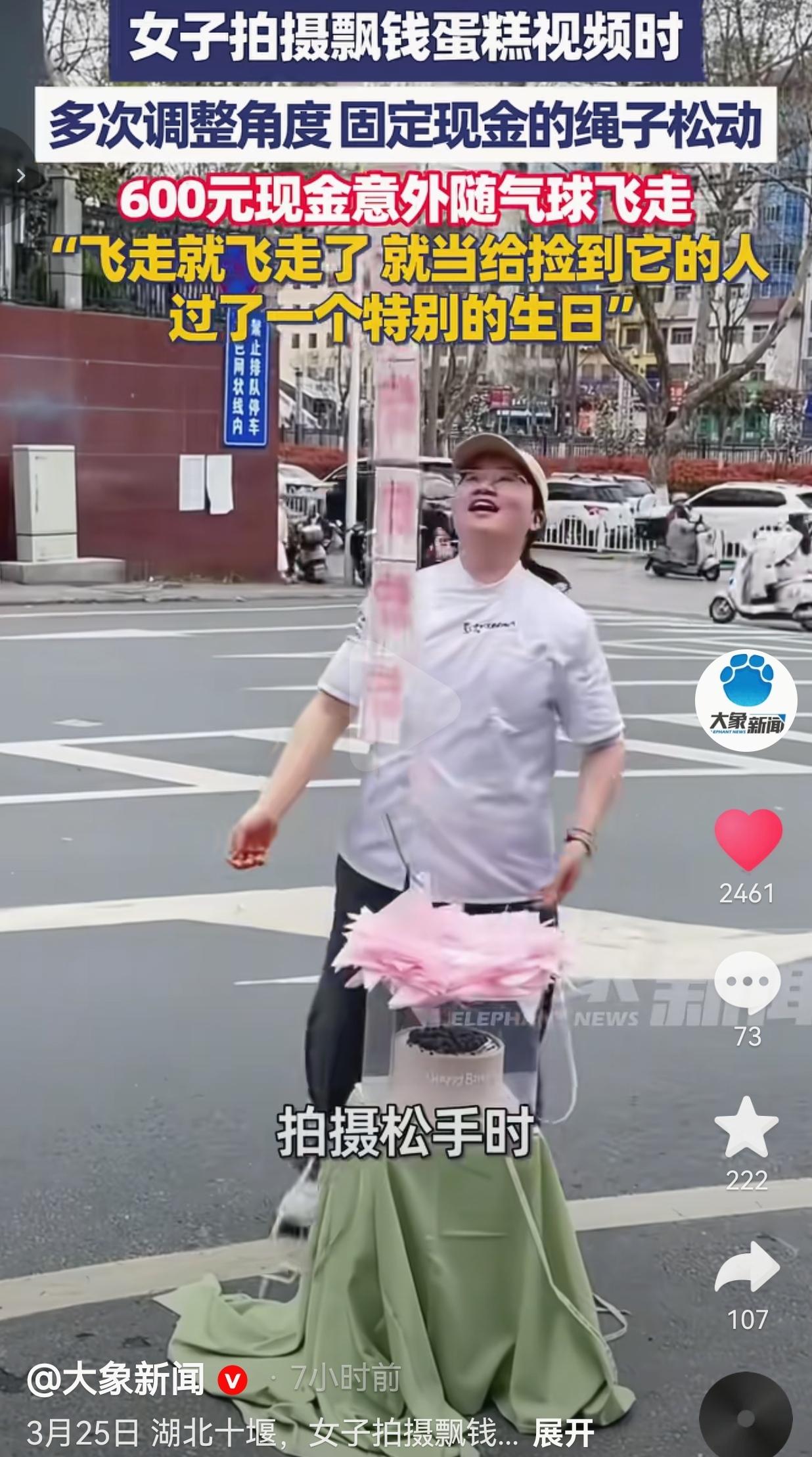 笑疯了!湖北一蛋糕店拍视频,600块钱直接飞上天,老板娘一句话戳中全网泪点! 3月25号这天,蛋糕店的王店长为了拍个“飘钱蛋糕”的宣传视频,特意在透明气球里绑了600块现金——这可是她自己亲手做的创意,就想给顾客整个惊喜感。 为了找个最好看的角度,她来来回回调整了好多次,结果没注意,固定现金的绳子给磨松了。 等她笑着松开手的那一秒,600块钱“嗖”地一下跟着气球窜上天,越飞越高,转眼就没影了! 王店长站在原地,仰着脖子追了半天,手都挥酸了,只能看着钱飘走,最后自己先笑出了眼泪。 换别人早急得跳脚骂街了,结果她抹了抹眼泪,对着镜头乐呵呵地说:“飞走就飞走了,就当给捡到它的人,过了一个特别的生日!”  网友看到后评论说: “哈哈哈哈这才是真正的‘财运飞走’!换我得心疼得哭一晚上,老板娘这心态也太绝了!” 也有的网友说: “600块啊!够我吃半个月快餐了!但这话一说出来,瞬间觉得这钱花得值,我都想去她家买蛋糕了!” 还有的网友说: “捡到钱的人今天得乐疯了吧!白捡一个生日红包,这是什么神仙运气啊!” 也有的网友说: “这才是做生意的格局!不纠结这点损失,反而把坏事变成了暖心故事,活该她火!” 我看完这事儿,直接被戳中了! 现在多少商家,一遇到点事就甩锅、推诿、哭惨,恨不得把损失全算到顾客头上。 可这位王店长呢?600块钱说没就没了,她没抱怨、没骂街,反而笑着把意外变成了一份送给陌生人的祝福。 这哪里是600块钱飞走了?这是把最实在的人情味,飘到了每一个看视频的人心里!那些天天喊着“流量密码”的网红,绞尽脑汁搞剧本、博眼球,最后还不如一句“就当给别人过个生日”打动人。 真正的流量,从来不是套路,是你把人当人,把心掏出来,别人才会愿意为你买单。   这件事最戳人的地方,从来不是钱飞了,而是这份“算了”的豁达。 我们总在为一点小事纠结、内耗,丢了几十块钱能心疼好几天,遇到点挫折就怨天尤人。可王店长用600块钱告诉我们:人生哪有那么多完美,意外来了就笑着接,把遗憾变成祝福,反而能收获更暖的回响。 能笑着放走600块的人,日子只会越过越红火!这才是普通人最该有的活法! 对此,你怎么看?