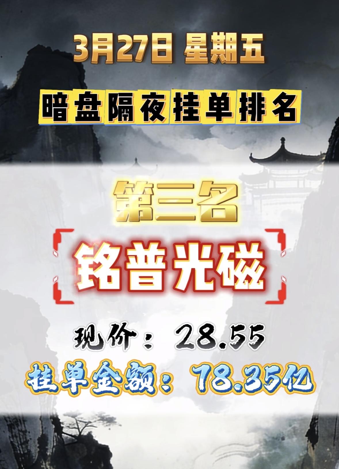 3月27日周五暗盘隔夜挂单排行榜出炉 3月27日,渤海化学股价5.21元,挂单竟达39.88亿,这数据一出来就很抓眼球。渤海化学原名天津磁卡,历经多次更名,从1993年到2021年,名称变了好几个。2026年还有不少大事,2025年年报预约2026年4月17日披露,截止2月27日质押总比例0.23%,质押总股数250.00万股。2月还发布了募投项目投产等公告。这么多信息交织,这39.88亿的挂单背后,渤海化学后续走势会怎样,值得关注。