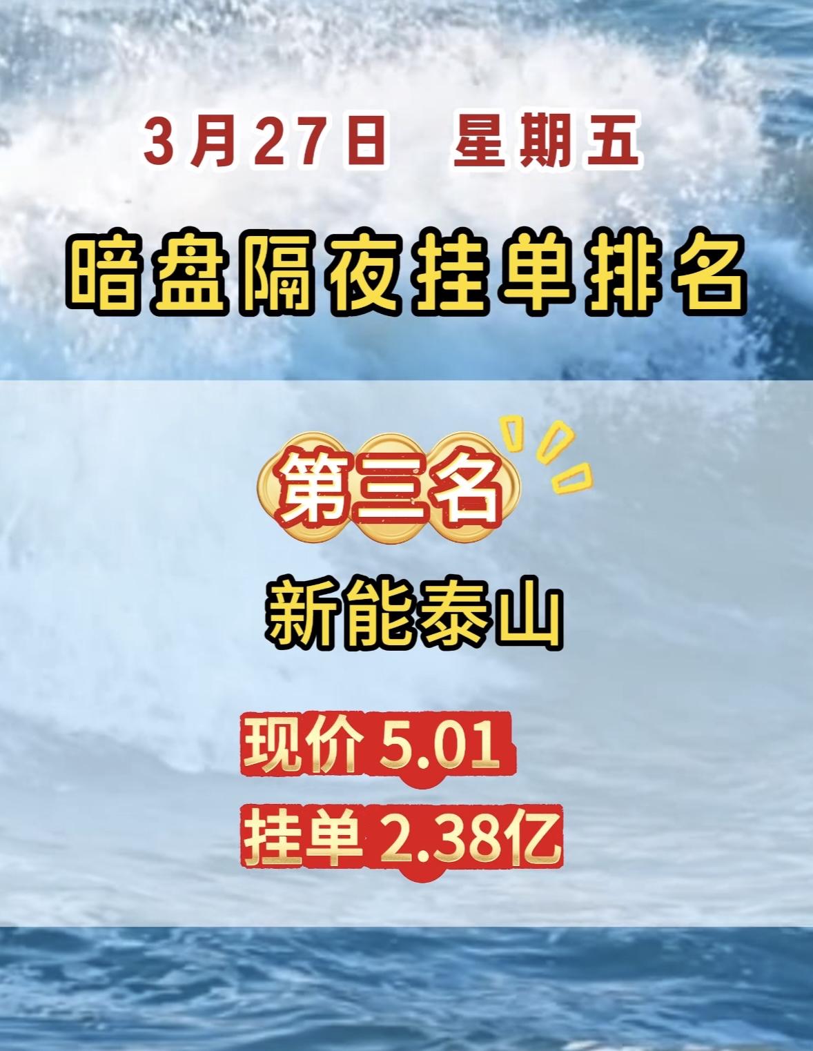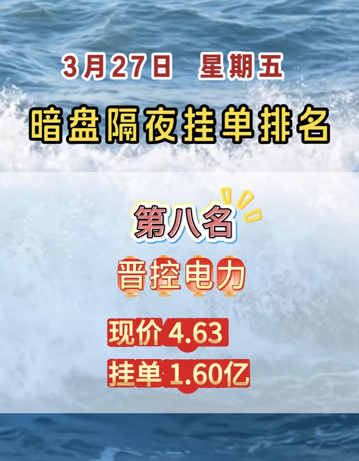 3月27日周五暗盘隔夜挂单排行榜出炉 暗盘隔夜挂单榜很有看头啊。就说现在第一名的中超大控股,现价8.76,挂单3.31亿。这数据背后可藏着不少门道。 对比3月26日和3月5日的暗盘隔夜挂单前八。3月26日挂单金额都挺吓人,像华电辽能挂单125.35亿,3月5日杭电股份也挂了95.29亿。不同时间不同股票的挂单情况差异大,这反映出市场的动态变化。中超大控股这次能登顶,说不定后续有大动作,值得持续关注,看看它能不能借着这挂单的东风在市场上掀起一番波澜。