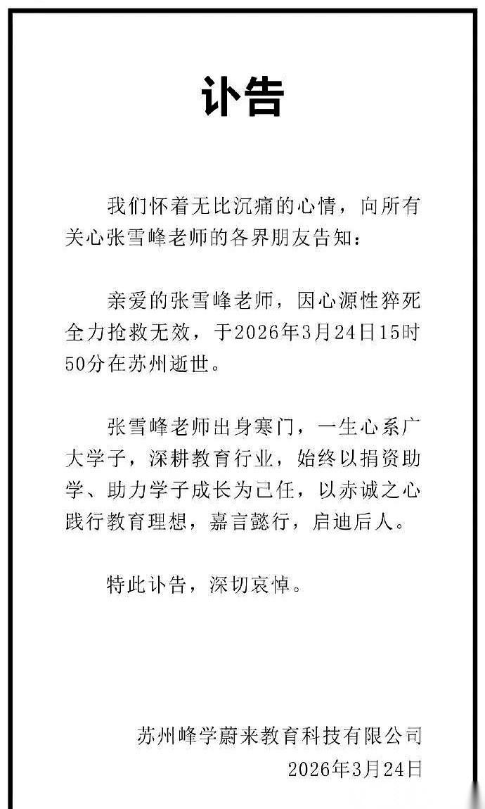 张雪峰最后那场直播,镜头拉近,一张脸已经不对称了。 左边嘴角往下掉,眼睛也明显一大一小。弹幕刷满了“快去医院”,他只是摆摆手,把整场讲座硬是扛了下来。 几个小时后,他没去医院,而是换上运动鞋,站上了公司健身房的跑步机。 他似乎要证明什么。证明那个被马拉松拒绝的身体,依然强悍。证明屏幕前那个疲惫到变形的男人,只是个幻觉。 跑步机上的数字开始滚动,一公里,两公里,三公里......他大口喘着气,汗水顺着那张已经发出警报的脸往下淌。 他把自己的一切都规划好了,公司留给女儿,财富留给女儿,社交账号里,全是陪女儿长大的痕迹。他拼命往前冲,就是为了身后那个小女孩。 屏幕上的数字跳到7公里,他身子猛地一晃,直接从机器上栽了下来。 世界安静了。 再过三个月,就是他女儿11岁的生日。他承诺过的生日照,永远都拍不成了。 他用生命给所有人上了一课:那个叫“自律”的词,前面要是没了“健康”两个字,就是一剂毒药。 他给女儿留下了别人几辈子都赚不到的钱,却让自己永远缺席了她的整个未来。 你说,这笔账,到底是怎么算的?