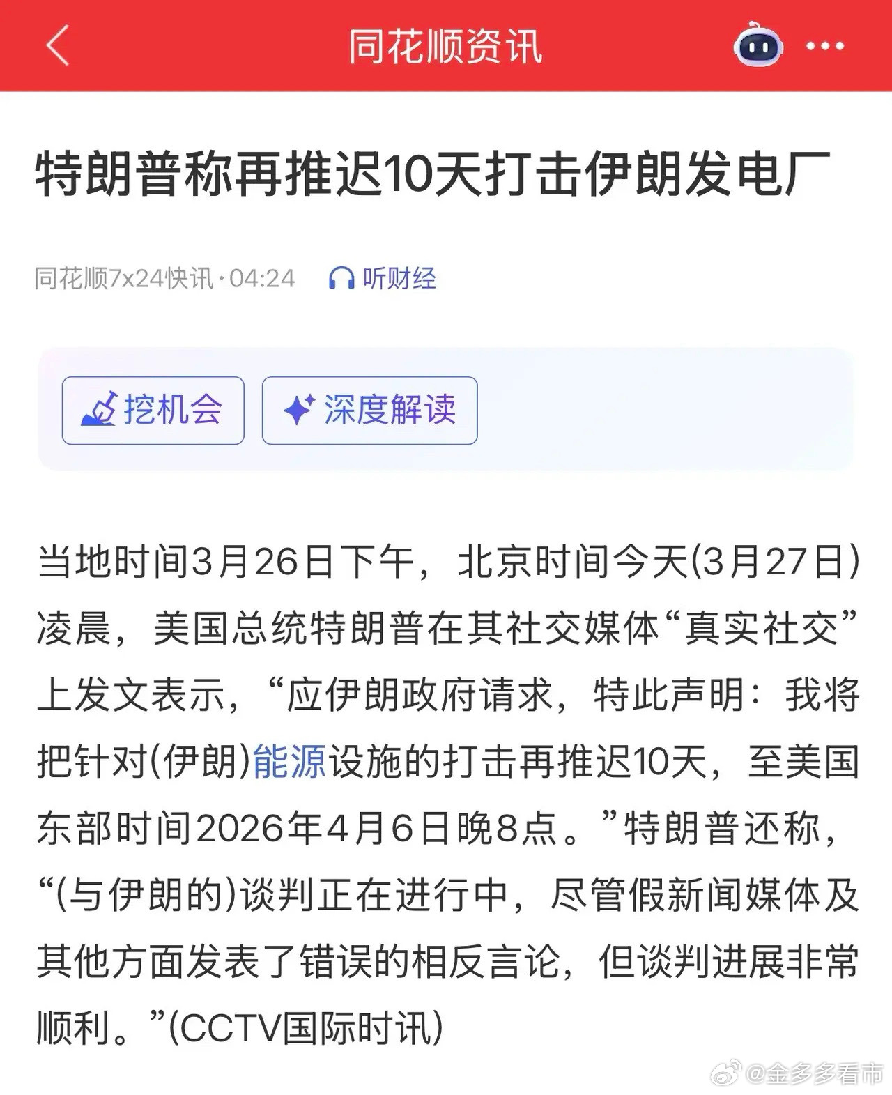 ①一是懂王宣布再推迟10天打击伊发电厂(之前推迟五天,现在宣布再推迟十天)