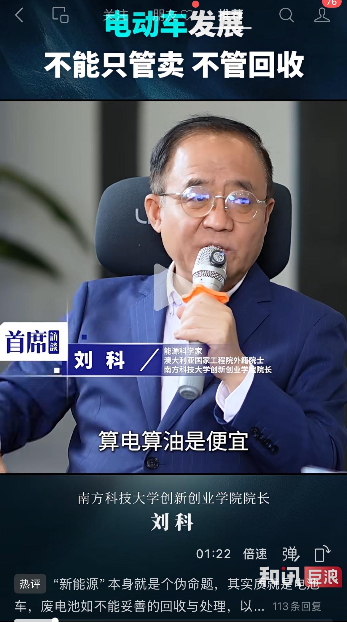 这位澳大利亚工程院的外籍院士,总是一副语不惊人死不休的样子!! 刘院士又对中国的新能源汽车发表高见了。 他说,为何欧洲新能源发展不行,主要是他们重视环保; 看到新能源汽车的电池不好回收,污染巨大,人家才不做的。 我们难道是只管卖,不管回收吗? 刘院士进一步说明,新能源汽车电池就是八年大限; 现在很多要到了最后期限了,怎么办,难道不管了吗? 电比油便宜,但8年之后,电池一分钱不值,还要回收,算过这笔账吗? 这家伙,总是看不得我们好。 还活在8他们润出去的80年代呢!! 电池回收技术早已经非常成熟了,你还坐在办公室闭门造车,录视频呢!! 我记得这位外籍院士之前还发表了看衰中国新能源汽车的观点; 他在一个论坛上怼新能源汽车: 每天拖着一个600公斤的电池到处跑,纯粹是浪费人类宝贵的能源。 他认为还是需要汽油,液体能源一定是未来的主流跟趋势。 网友说,要严重警惕这些所谓的外籍院士; 他们难道带着什么任务和目的吗? 要不然怎么就这么反常,我们做什么都不对,就他们欧美厉害?? 对此,你有何看法呢?