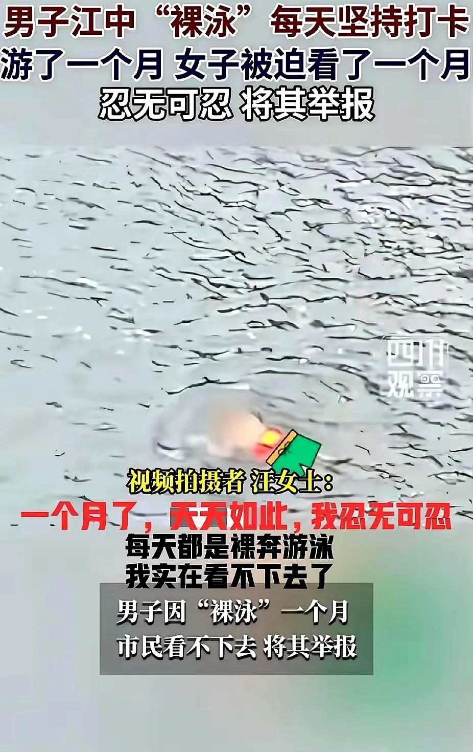 乐山那位大姐报警,说桥下有个男的天天裸泳,有伤风化。 警察过来一问:“多久了?” 大姐理直气壮,嗓门都亮了八度:“一个多月了!我天天被迫看他!” 旁边做笔录的小警察,手里的笔尖在纸上顿了一下,抬头看了她一眼。 一个多月。 每天下午,太阳懒洋洋挂着,大姐就掐着点,慢悠悠踱到桥上那个老位置。双手往栏杆上一搭,身子微微前倾,镜头就自动对准了桥下。 等着。 果然,那个身影晃晃悠悠就来了。脱衣服,下水,扑通一声,水花溅得老高。 大姐就这么扶着冰凉的栏杆,看着他在浑浊的江水里扑腾,像条滑溜溜的白鱼,翻滚来,又翻滚去,一看就是大半个钟头。 这个桥下水域是乐山城区的公共景观河段,周边1公里内分布着3个居民小区、1所小学,每天下午这个时段,过往行人、休闲散步的市民能有上千人次,根本不是人迹罕至的偏僻野滩。 当地城市管理条例明确禁止在公共水域裸泳,且该河段平均水深超5米,非汛期水流速度可达每秒1.6米,水下暗藏乱石与暗流,2025年当地消防部门就处置了11起野泳相关的救援警情,野泳本身就属于高风险危险行为。 周边不少居民都对该男子的行为有不满,大多选择绕路避开,唯独这位大姐,连续一个多月定点蹲守,精准卡着对方游泳的时间到桥边,连对方每天下水的时长、换过的泳姿都记得清清楚楚,这份“被迫观看”的坚持,让现场处置的民警都颇为无奈。 公共空间的自由,始终以不打扰他人为核心前提。裸泳行为既违背公序良俗,违反了城市公共区域的管理规定,更潜藏着危及生命的安全隐患。以维护公共秩序为由的诉求,也该守住合理边界,持续的定点关注,早已偏离了制止不当行为的初衷。公共环境的和谐,需要每个人守住行为底线,既不越界侵扰他人,也不滥用公共诉求的权利。