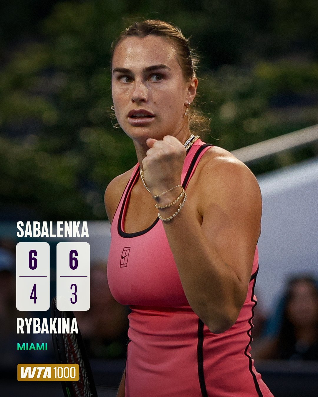 相比于印第安维尔斯站决赛,今天的萨巴伦卡打得更加专注,更加自信,而上轮就显出疲态的莱巴金娜没能跟上节奏,就连最强项发球也全场落在下风。澳网决赛中,她在二三两盘之间连丢五局之后完成逆转,但今天,神奇的energy不复存在,莱巴金娜第二盘第一个发球局40-0领先之后遭遇破发,比分士气双受挫,在两盘之间隐形吞蛋,最终无力回天。