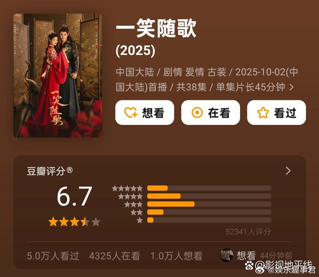 陈哲远李沁主演的《一笑随歌》突然爆了,开播169天后,以超40%的热度涨幅直接屠