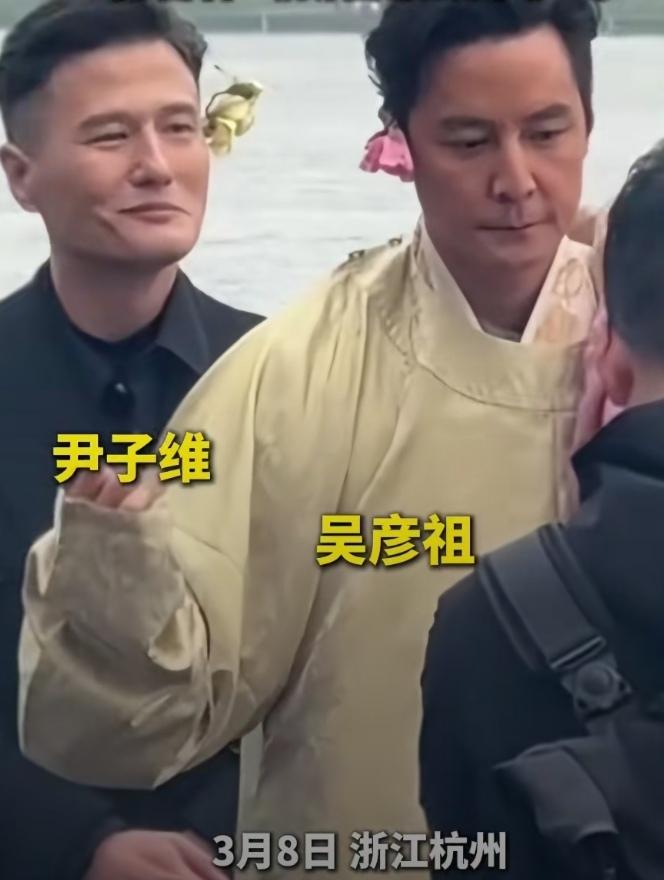 最近杭州西湖直接被簪花男生霸屏,网友直呼春日颜值天花板。一位是凭宋制汉服出圈的卖花郎,明黄长衫背着竹筐在湖边安静赠花,清冷又温柔,像从古画里走出来的公子,不营销不炒作,凭颜值和气质圈粉无数。 另一边是吴彦祖、尹子维3月8日现身西湖录综艺,双双簪花营业。吴彦祖一身汉服儒雅帅气,尹子维大衣配鲜花潮范十足,两人沿路给游客送花送定胜糕,风度不减当年。 不少人感慨,原来男子簪花自古就是风雅事,如今古意美男遇上老牌男神,西湖这波春日颜值局,谁看了不心动。