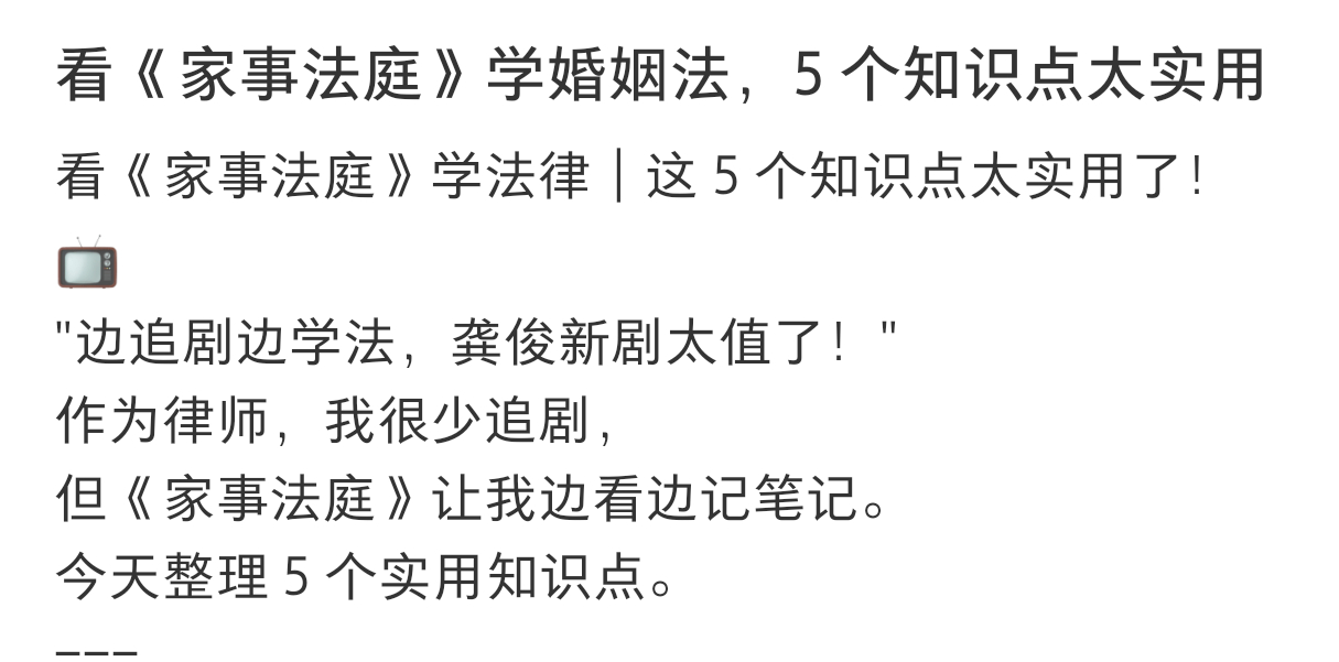 跟着龚俊《家事法庭》学法律知识了,法庭上比较常见的婚姻相关的几个知识点,一边看剧一边涨知识,轻松get✓家事法庭