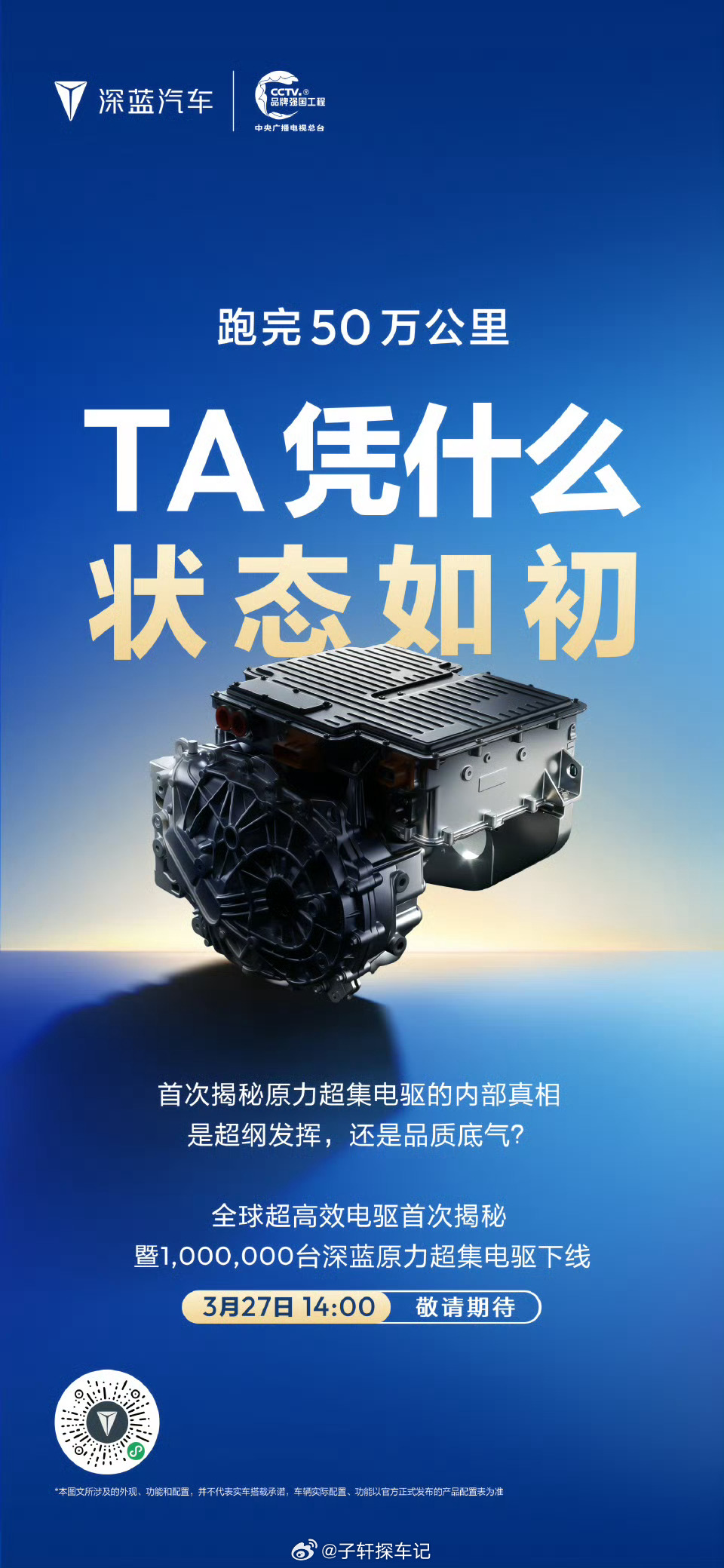 新一代3.0技术尚未公开,未来值得无限想象,期待更多重磅新品登场!深蓝汽车第100万台电驱下线百万电驱,实力加冕!深蓝第100万台电驱下线,硬核技术再攀新高峰,高效可靠,一路向前。