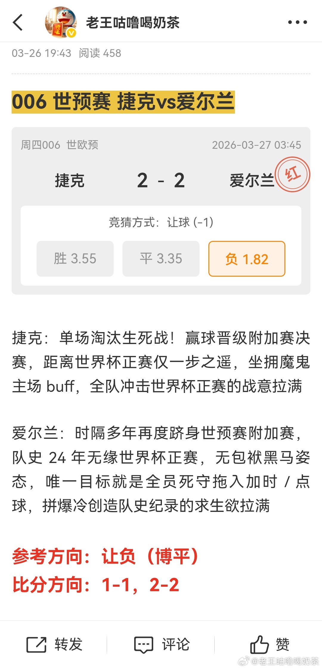 昨日文章公蓷世预赛:捷克vs爱尔兰方向比分2-2拿下!