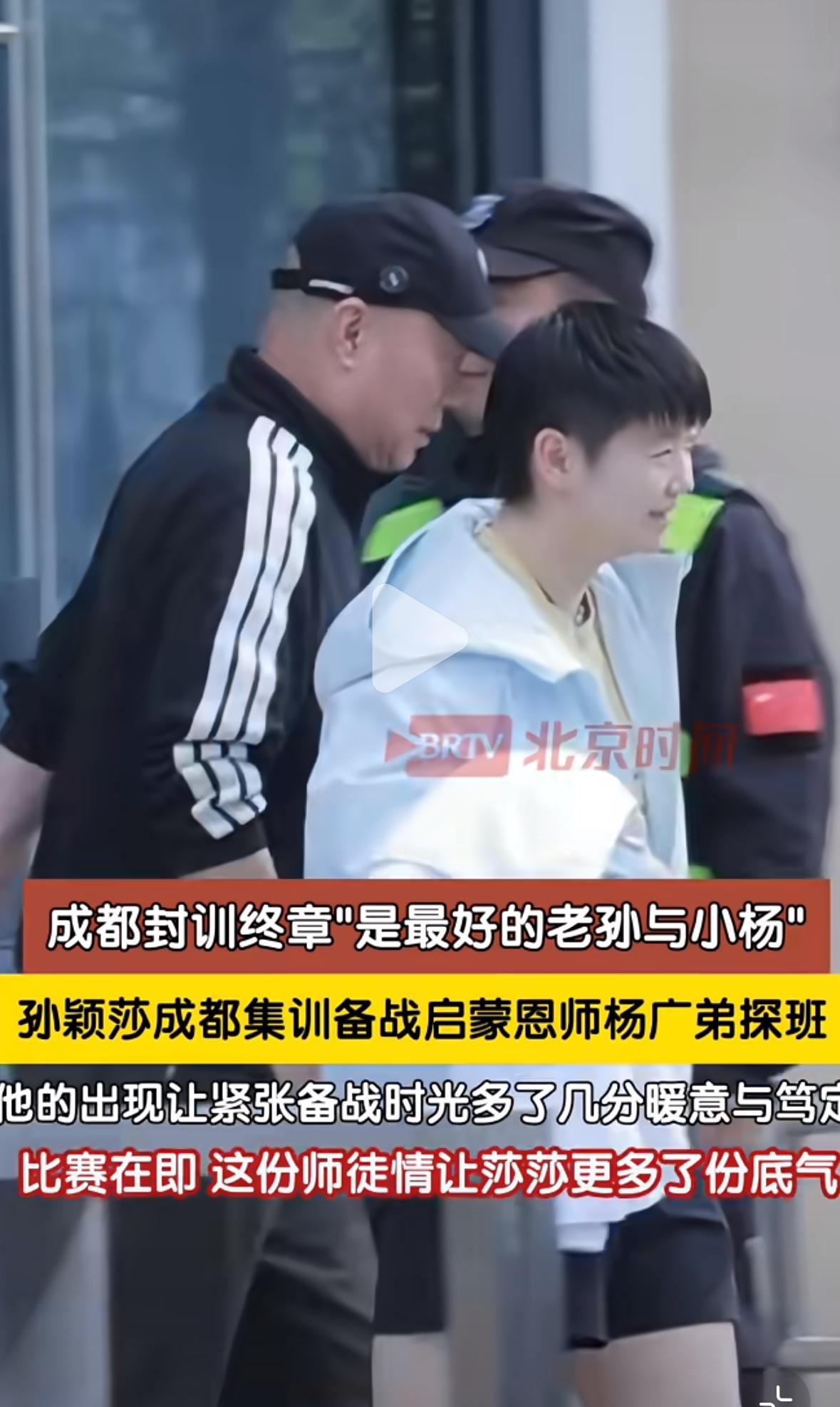 孙颖莎成都封闭训练,恩师杨广弟探班——师徒在一起莎莎笑的开心! 最好的师徒孙颖莎和小杨指导, 世界杯倒计时不到三天, 小杨指导出现在成都封训基地, 让莎莎紧张的备战时光, 多了几分暖意和底气! 队内选拔伦敦世乒赛的参赛选手, 各省都有教练在场, 队内选拔,也有河北队小队员, 小杨指导作为河北队主教练, 来到成都封训基地, 还是让莎莎异常开心, 莎莎离家这么久, 大赛前看到家里人, 心里非常踏实, 最好的小杨来看最好的老孙, 莎莎又幸福啦!