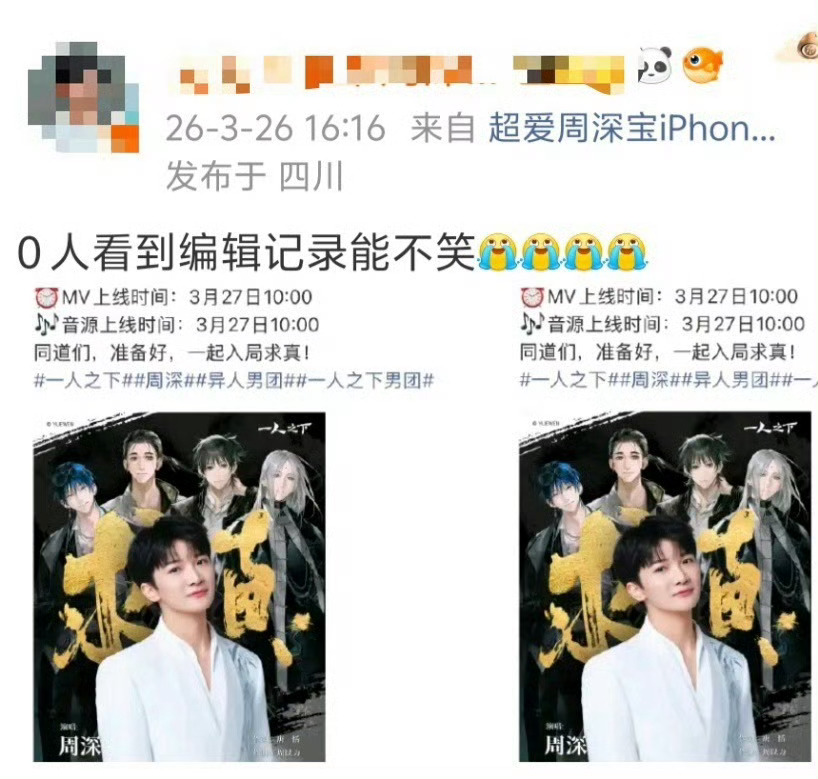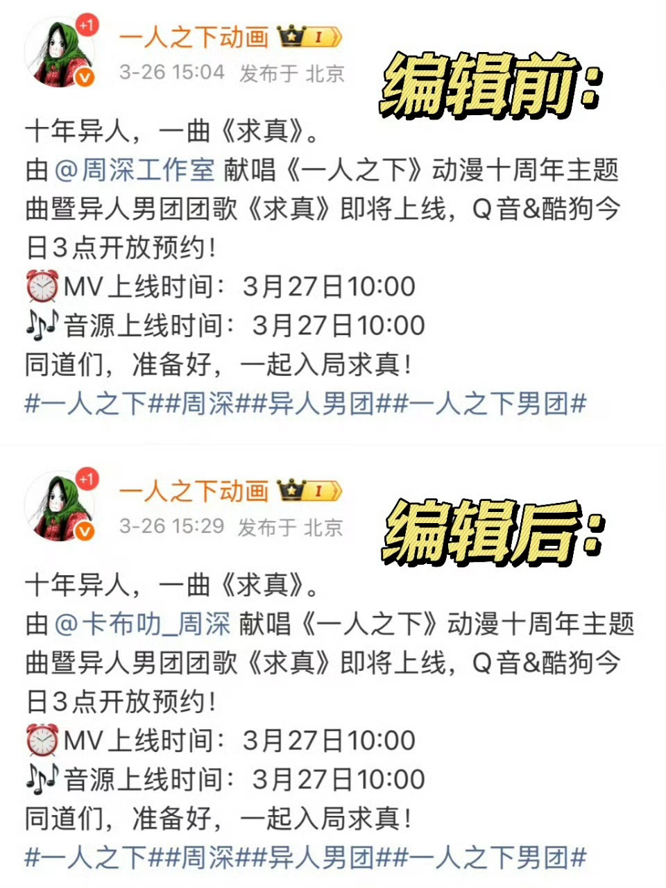 压力给到周深工作室一人之下官方原本想艾特周深,结果手滑艾特成了周深工作室,编辑前