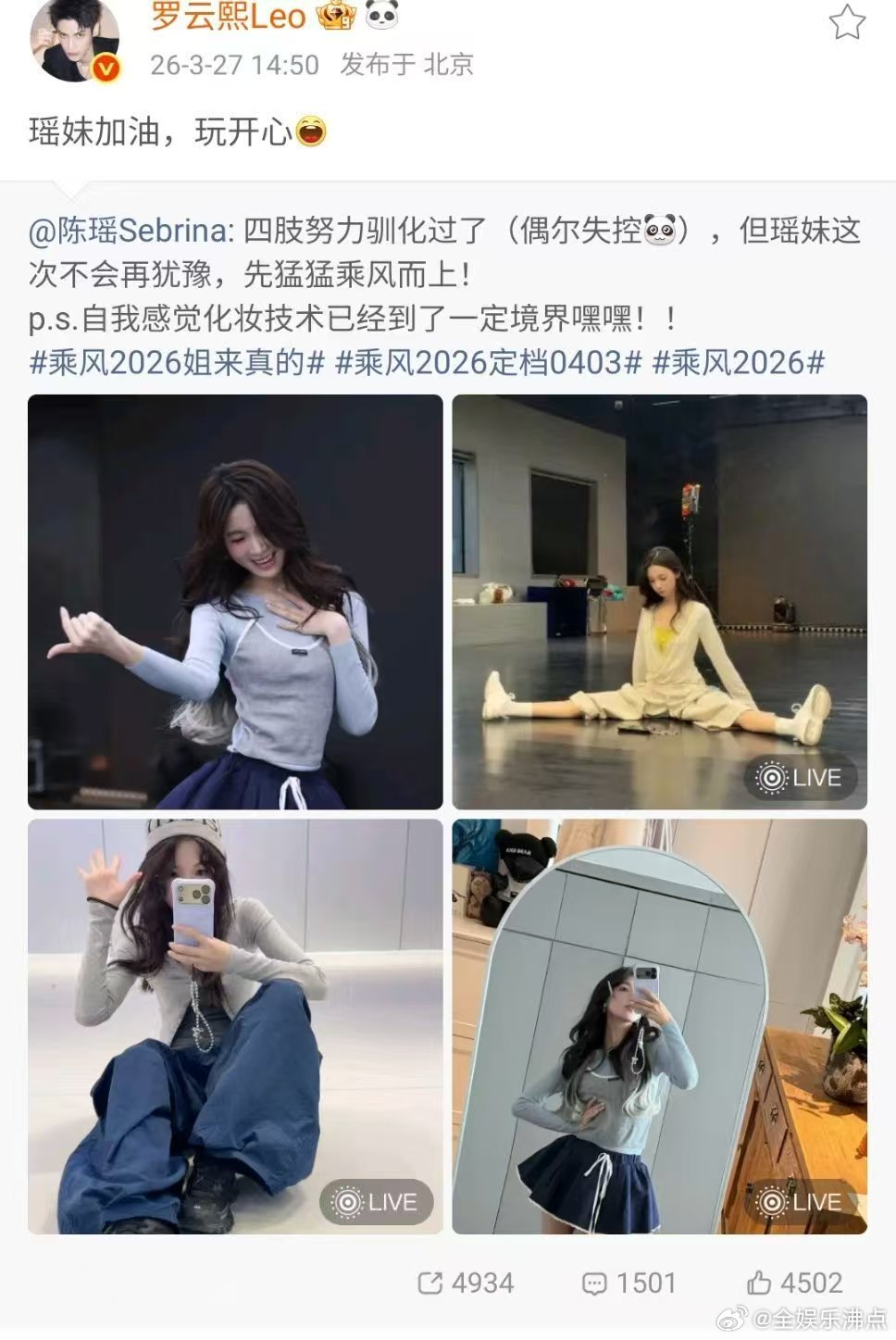 罗云熙为陈瑶乘风2026打call罗云熙祝陈瑶乘风2026玩开心乘风2026定档