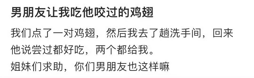 男朋友让我吃他咬过的鸡翅