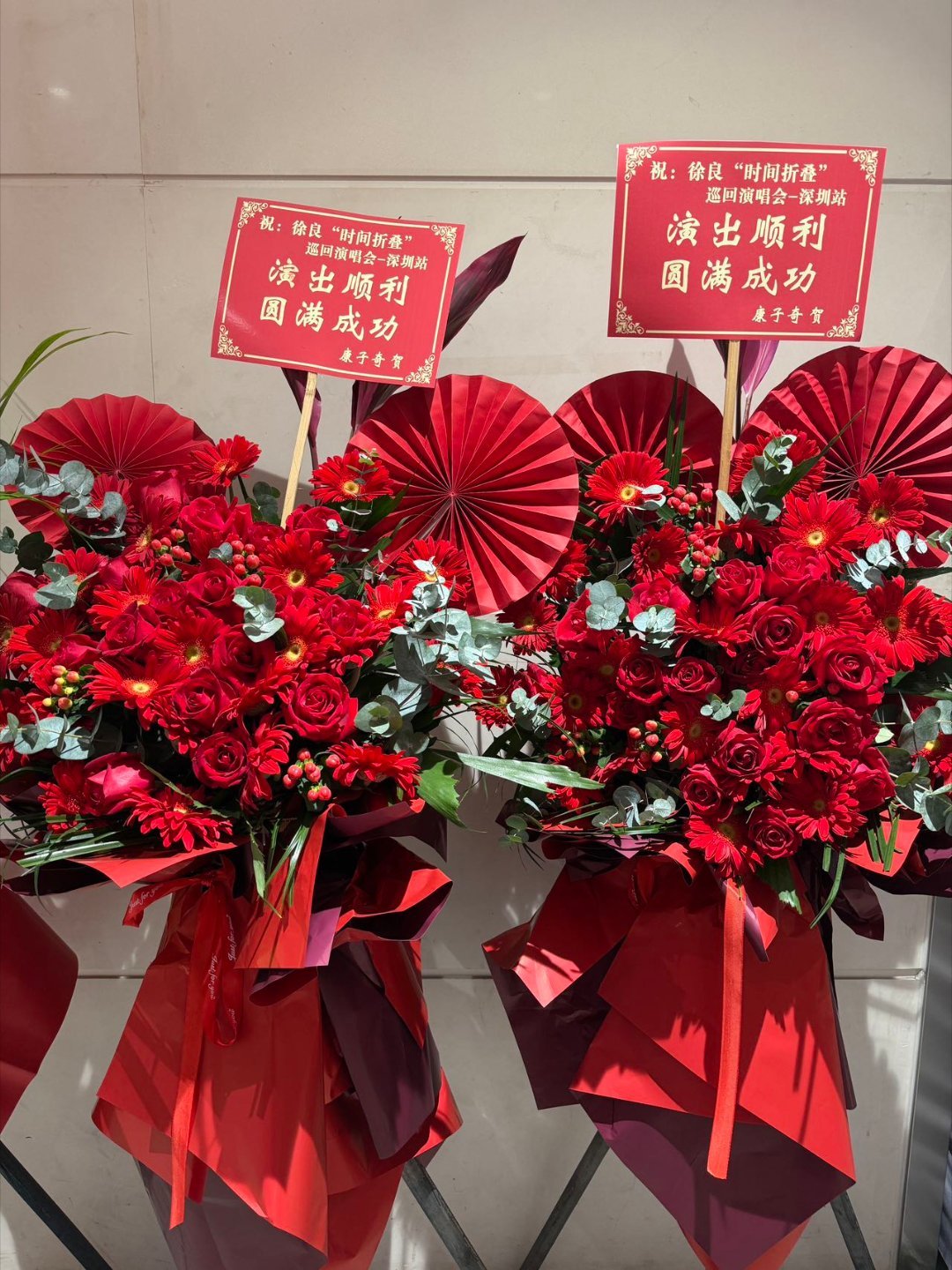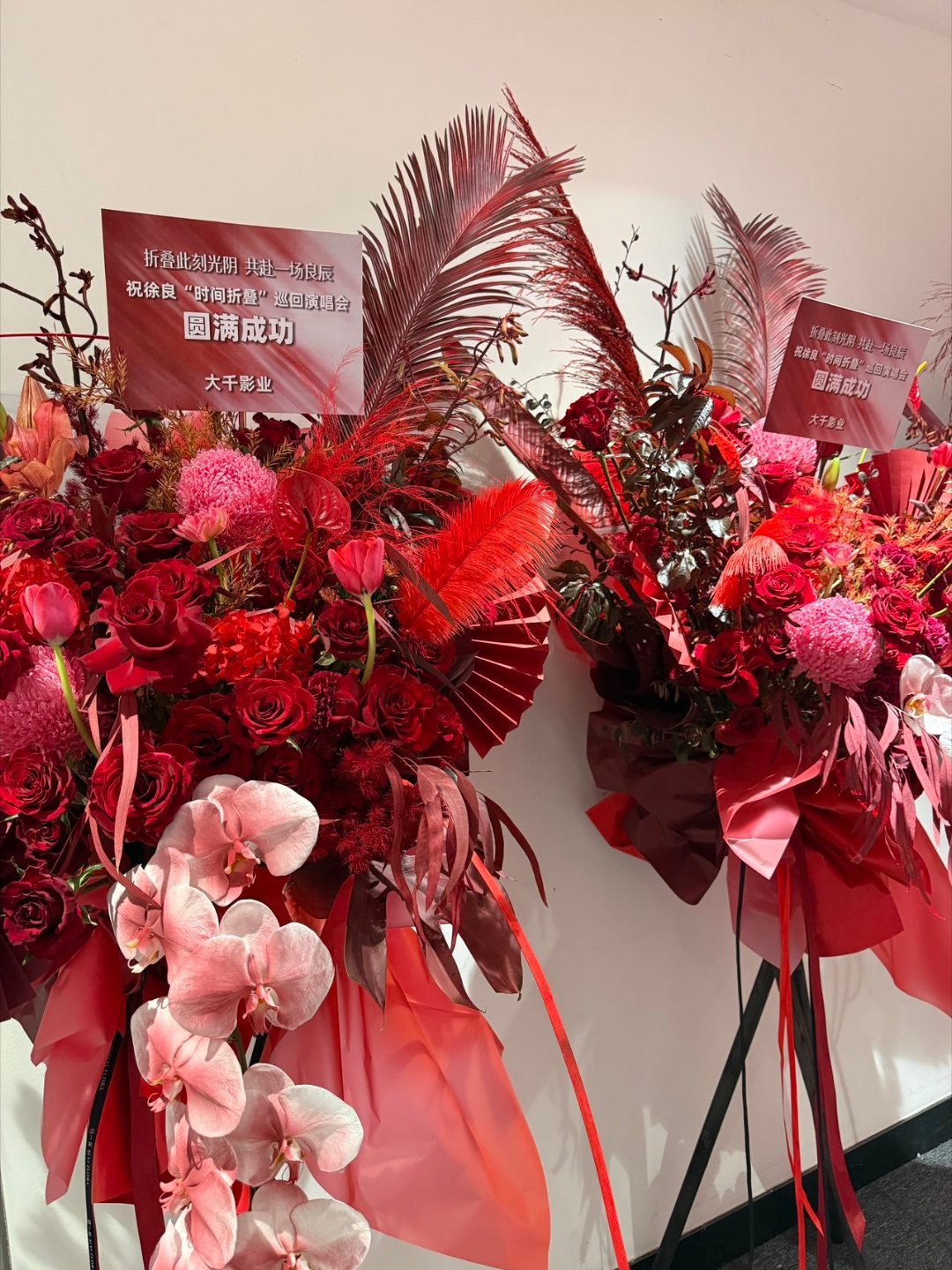 还是徐良有人脉徐良人脉这一块 花篮从走廊这头排到那头,收花收到“厌倦”也是种甜蜜的烦恼。汪苏泷、披哥兄弟们、湖南卫视的老友……各路祝福都到齐了。这排面,还得是徐良。祝演出圆满,静候精彩开场。