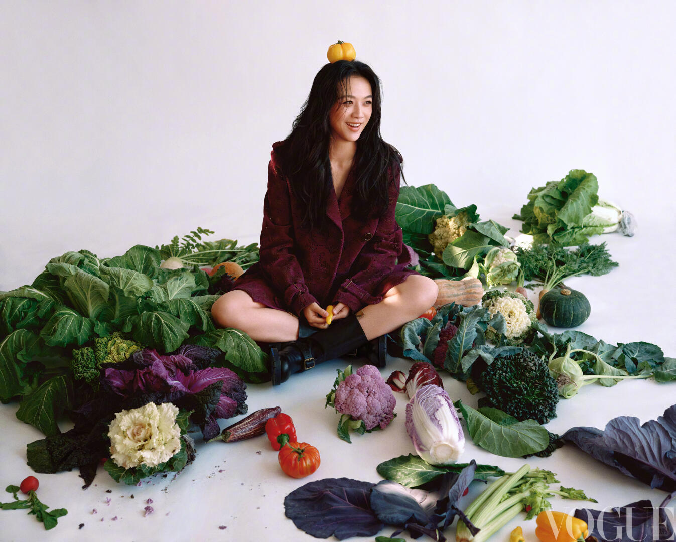 汤唯VOGUE封面 女明星和她的菜园汤唯封面是在菜园里拍的 时尚大片混搭田园菜地,汤唯这组封面也太有创意了!